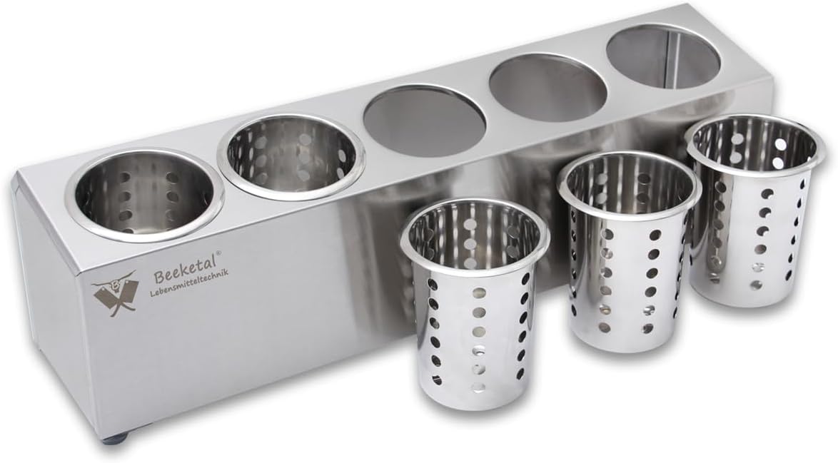 - Beeketal Profi Gastronomie Besteckbehälter aus poliertem Edelstahl mit schräger Oberseite und herausnehmbaren Besteck Köchern