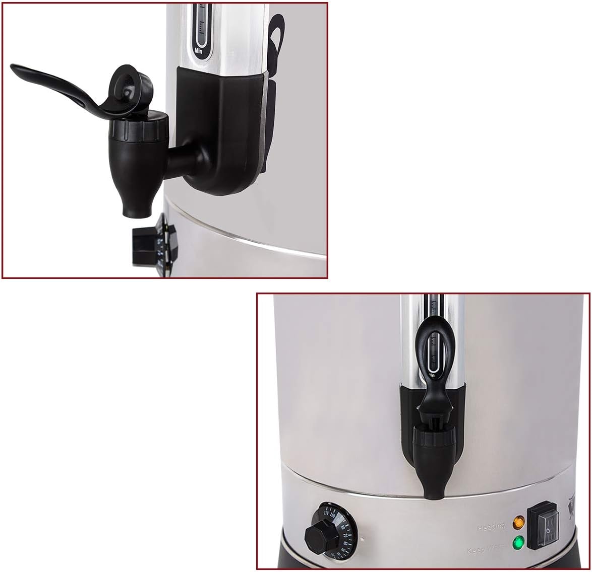 - Elektrischer Heissgetränkeautomat mit stufenlos einstellbarer Temperatur von 30-110 °C, externer Füllstandsanzeige und Anti-Tropf Zapfhahn
