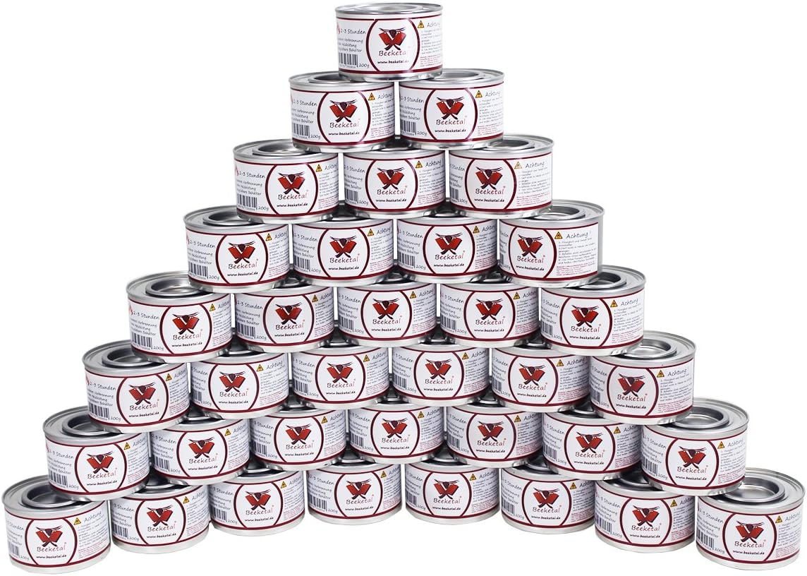 - 36 Stück Sicherheits Brennpaste Dosen von Beeketal mit dickflüssigem, leicht entzündlichen Sicherheits Brenngel auf Ethanol Basis - Set mit 36 x 200g Dosen
