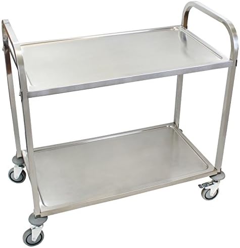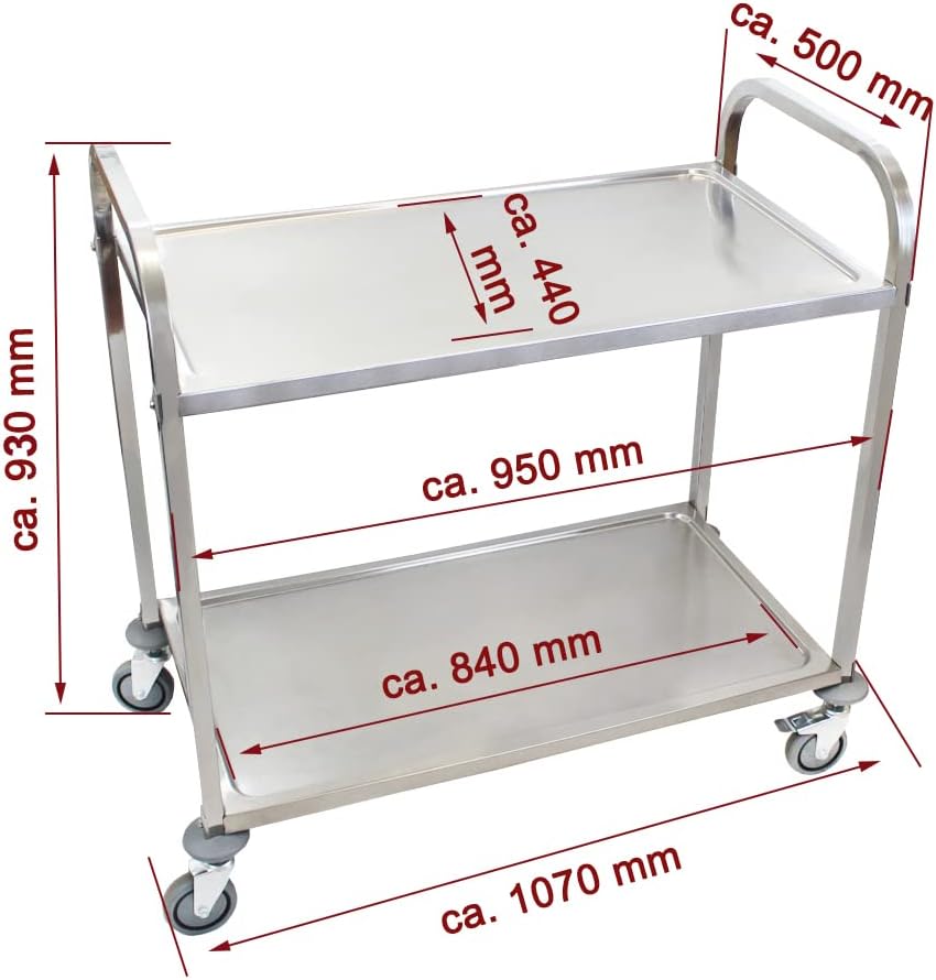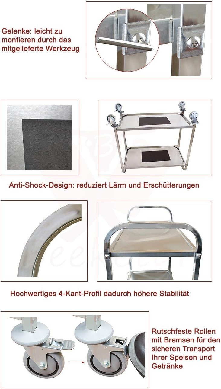 - Beeketal BSW-2a Küchen Servierwagen aus Edelstahl mit 2 Böden und Kantrohrgestell für bis zu 320 kg Belastung - Anti-Shock Design zur Reduzierung des Lärms bei Erschütterungen