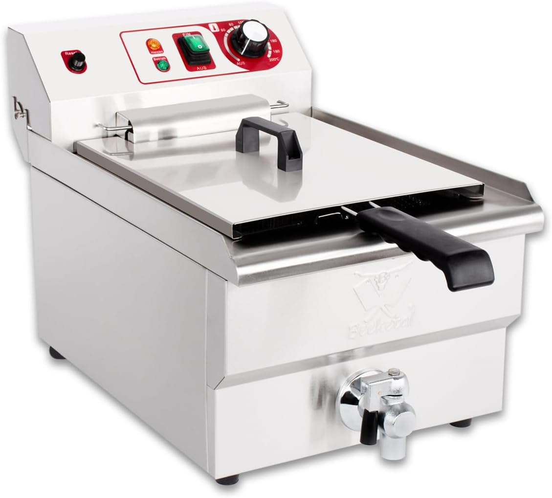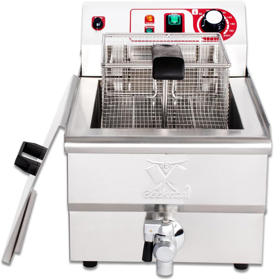 - Beeketal BWF131P - 13 Liter Edelstahl Profi Gastro Kaltzonenfritteuse inkl. Frittierkorb und Deckel. Fritteuse mit einem Gesamt-Fassungsvermögen von 13 Liter für ca. 8,5 Liter Öl, ideal für Imbisse oder in der Profi Gastronomie