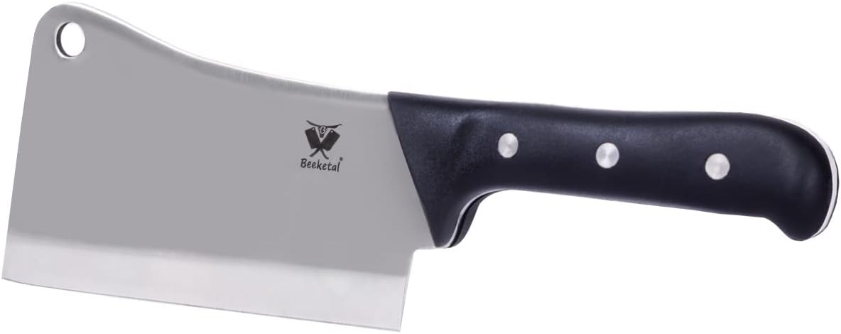 - Beeketal 'HBB-10' Profi Metzger Hackbeil mit ca. 180 mm Klinge aus 420 J 2 Edelstahl und einem speziell ergonomisch geformten und rutschfestem Griff für ermüdungsfreies Arbeiten - Ideales Hackmesser für den Einsatz in Fleischereien, Grossküchen oder den Hausgebrauch