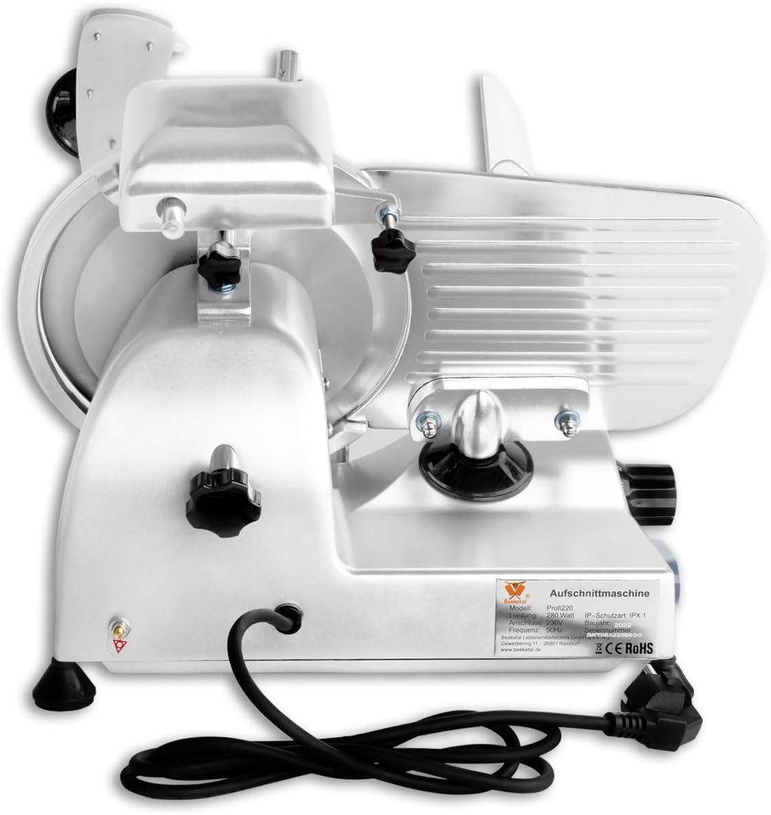 - Einfache und robuste Technik für den gewerblichen Dauerbetrieb, ideal zum präzisen Schneiden von allen knochenlosen Fleischwaren, Wurstwaren und Käse - ACHTUNG: NICHT geeignet zum Schneiden von Brot