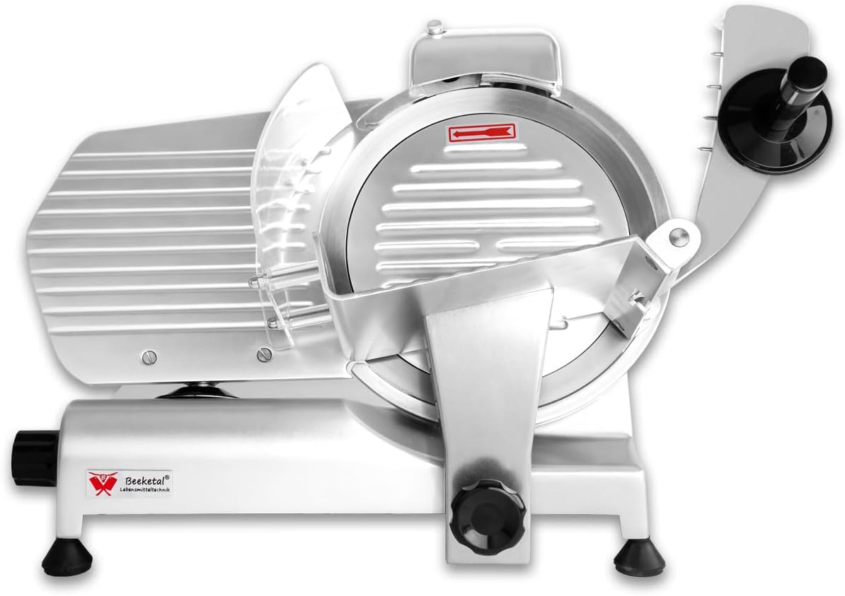 - Modell: Beeketal Profi 250, Ausführung: Schrägschneider, Messer Durchmesser: 250 mm, Schnittstärke: 0-10 mm, Gerät Abmessungen (L/B/H): ca. 510 x 410 x 370 mm, Schnittgutauflage (L/B): ca. 185 x 195 mm, Anschluss: 230 V - 50 Hz, Leistung: 320 Watt, Gewicht: 16 kg (Extra schwere Ausführung)