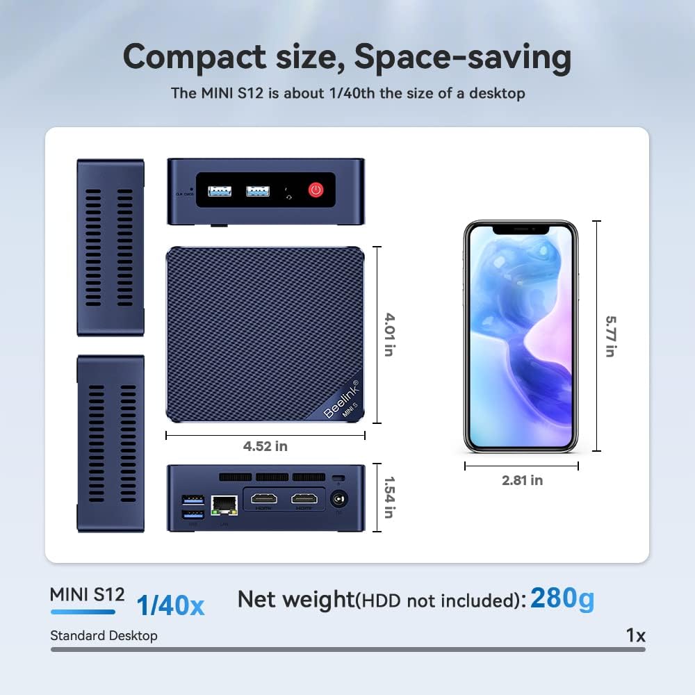 - ✅【4K UHD Dual Display】Beelink Mini Computer N95 mit Intel UHD Grafik, 2 x HDMI Anschluss. Beelink MINI-S12 unterstützt 4K UHD Display, perfekt für Home-Entertainment, Filme und Videokonferenzen, geniessen Sie alle Ihre Lieblingsfilme mit Ihrer
