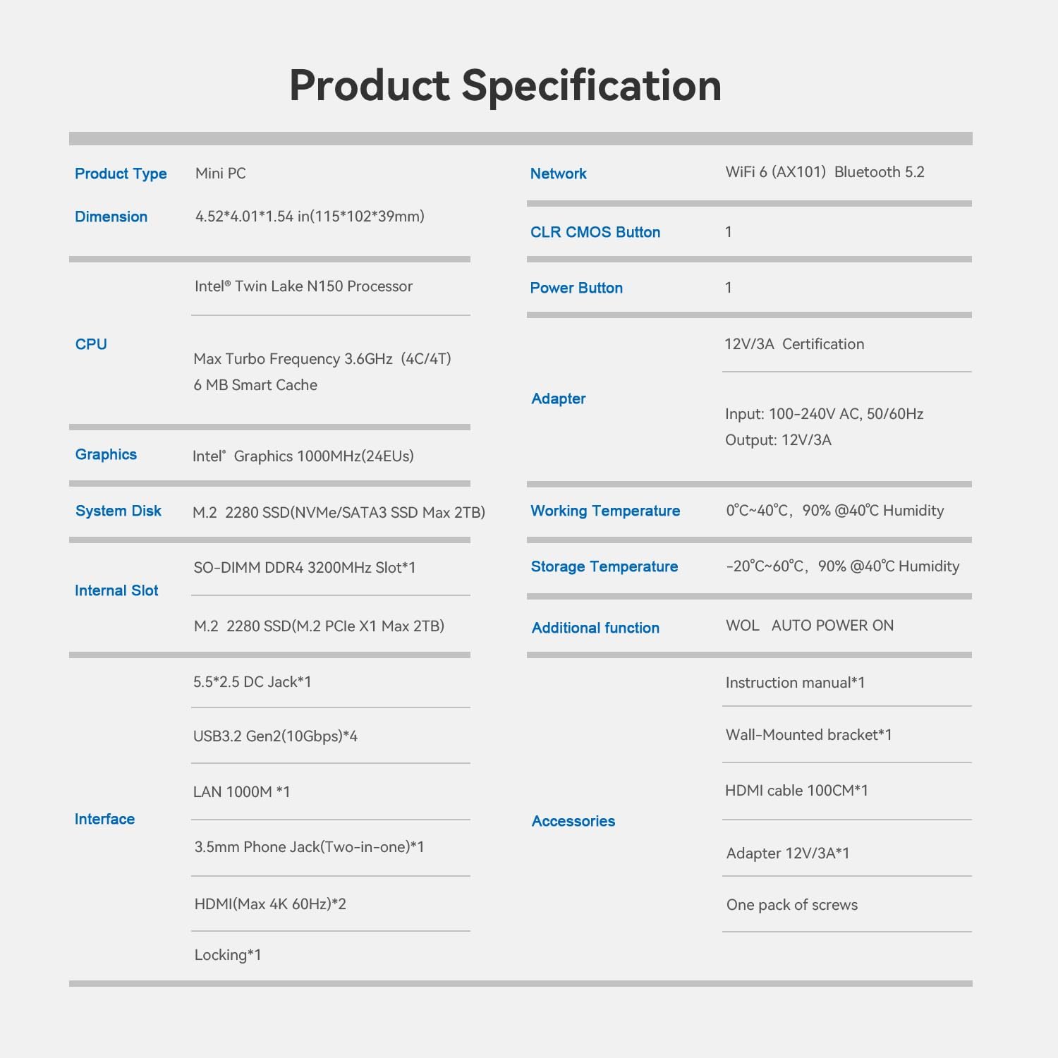 - ⚡【4K Dual Display】Der S13 N150 Mini Desktop PC ist mit HDMI * 2 ausgestattet und unterstützt zwei 4K HD-Displays für atemberaubende visuelle Effekte.