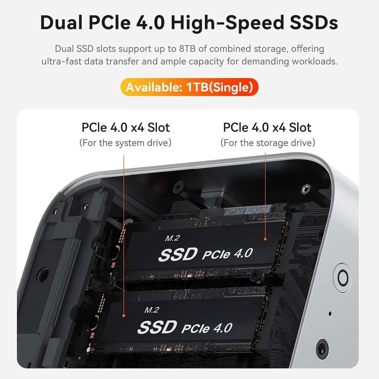 - đăGrosser Speicher & erweiterbare KapazitĂ€tăDer Beelink Mini Gaming Computer ist mit 32GB (2*16G) LPDDR5X RAM und 1TB M.2 PCIe4.0 SSD ausgestattet. Zwei M.2 PCIe4.0 SSD-SteckplĂ€tze unterstĂŒtzen bis zu 8 TB (4T*2), sodass Multitasking
