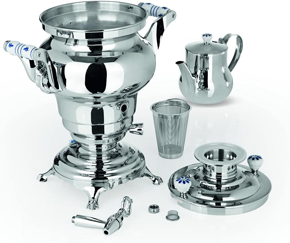 • Traditionelle Teezubereitung in einem echten Samowar, dem BEEM Samowar Odessa III mit 3 Liter Wasserbehälter und 1 Liter Teekanne mit Teesieb