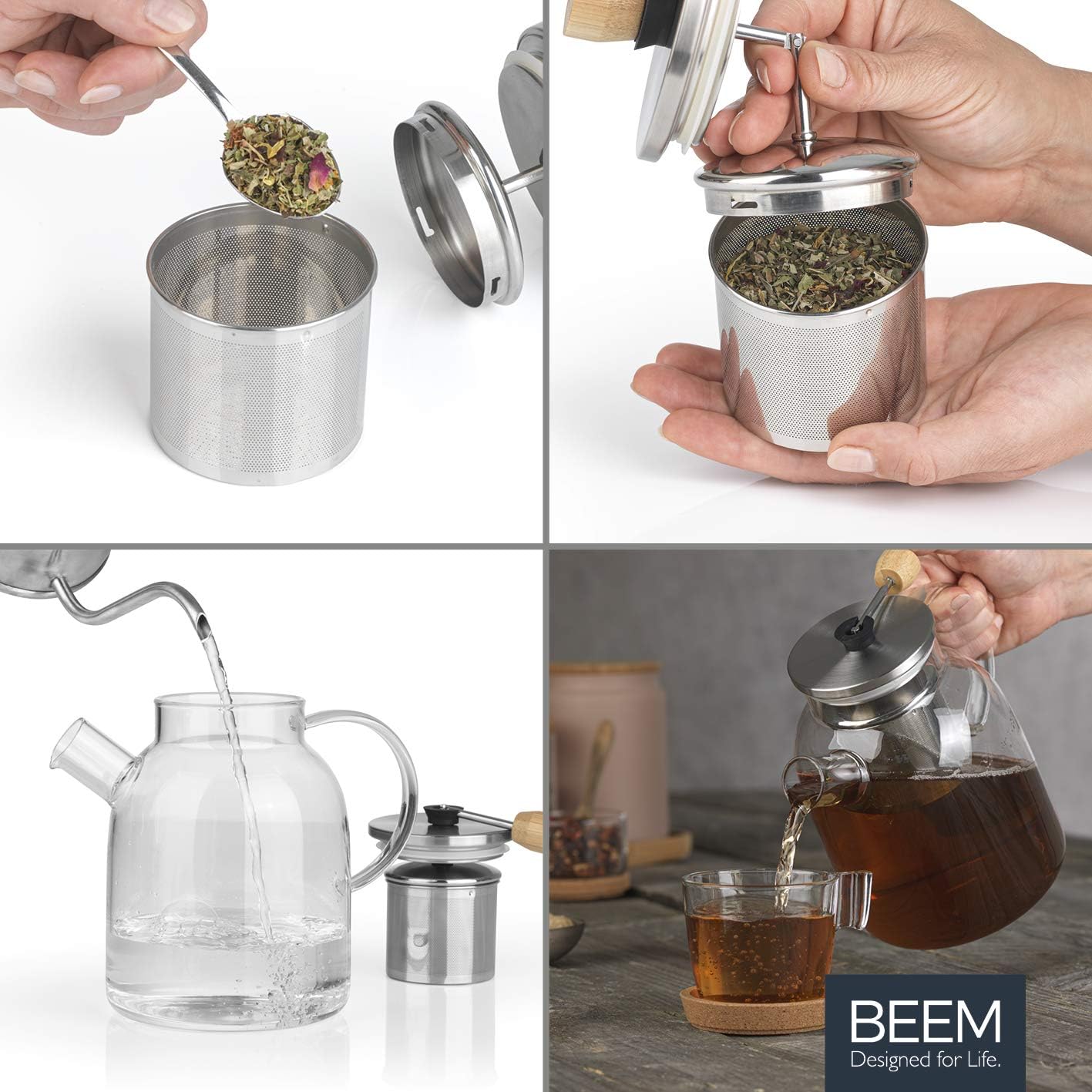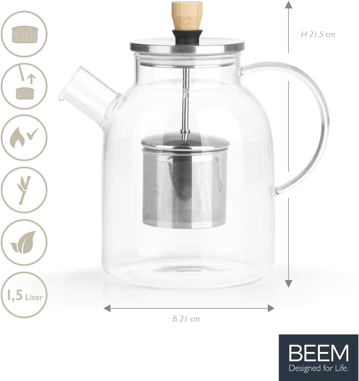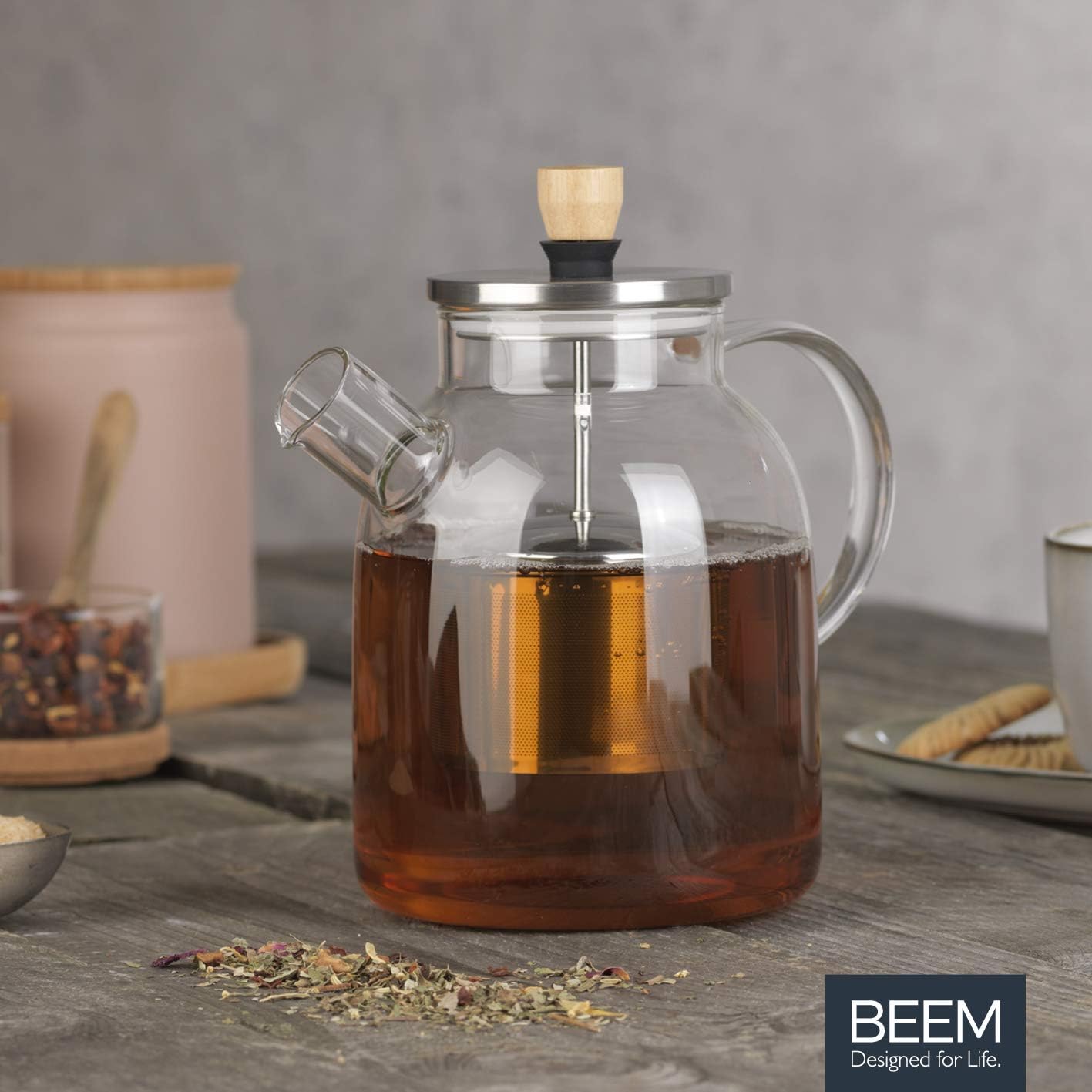 - GROSSZÜGIGES FASSUNGSVERMÖGEN: Für den Genussmoment allein oder mit Freunden. In der 1,5 Liter Glaskanne mit integriertem Edelstahl-Sieb mit Hebefunktion können bis zu 12 Tassen Tee zubereitet und stilvoll serviert werden.