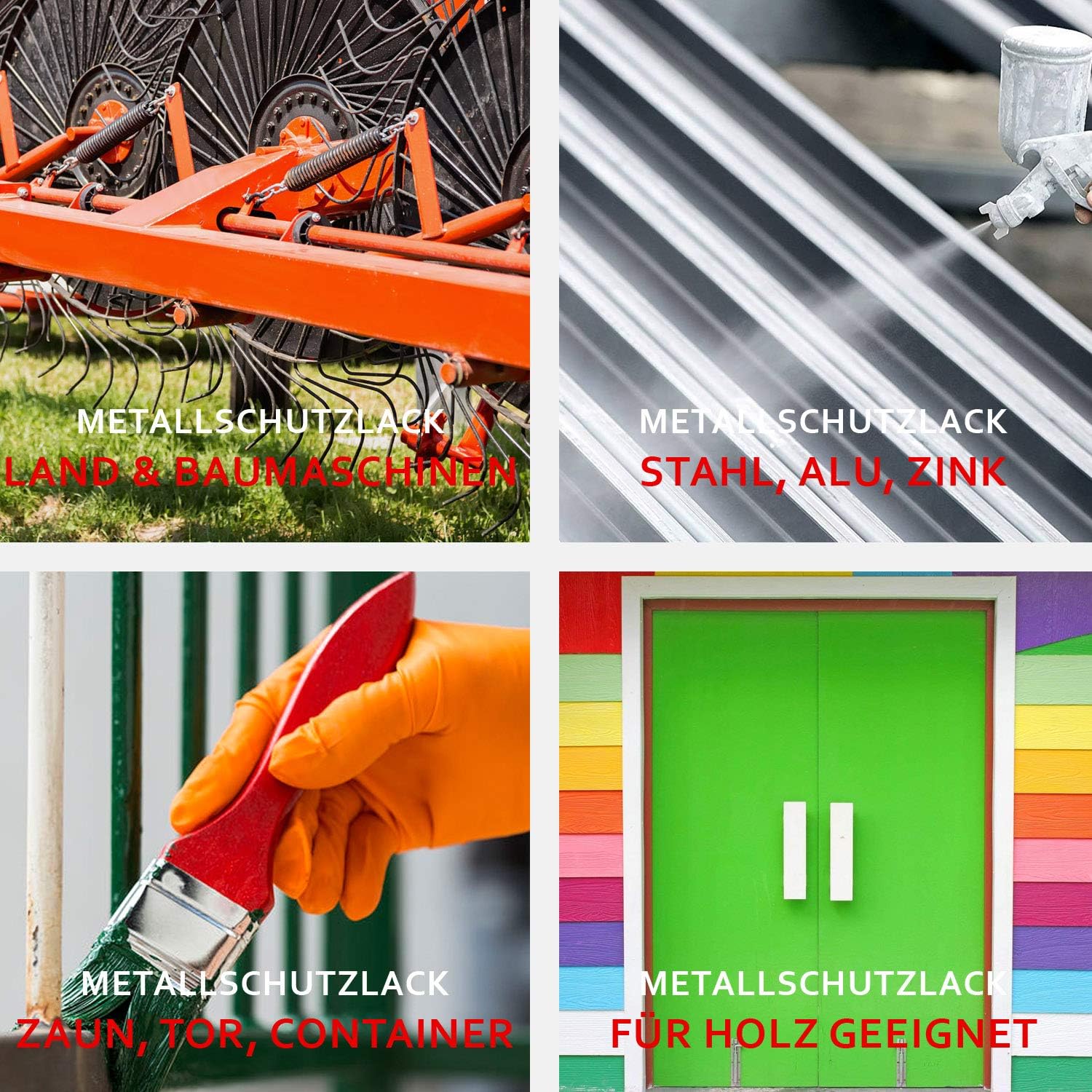 - VIELSEITIGE ANWENDUNG: Die Premium Metallfarbe eignet sich besonders für Geländer, Container, Zäune, Tore, Land- und Baumaschinen, Gartenwerkzeuge, Nutzfahrzeuge & Anhänger aus Metall, Eisen, Zink, Alu & Stahl.