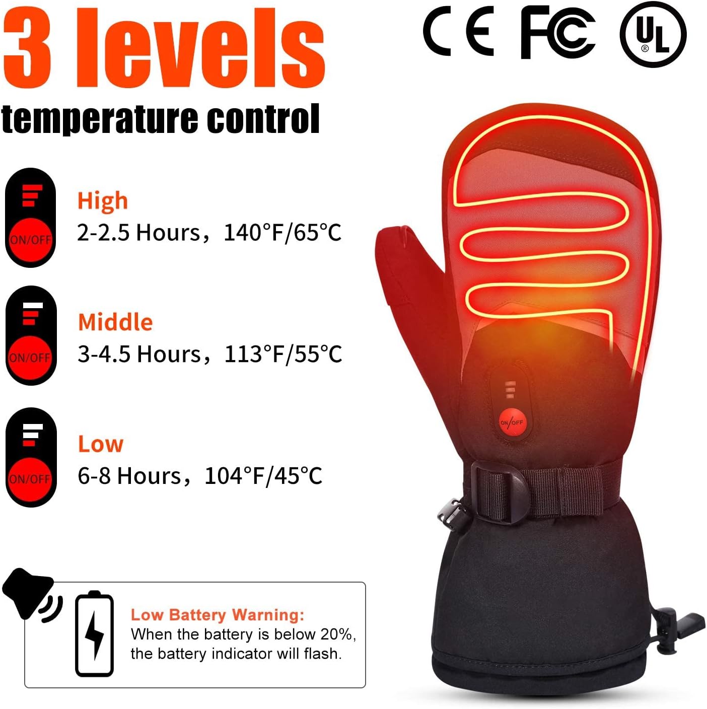 - 【3 Temperatureinstellungen & Daumen-Doppelheizung】Bei den elektrischen Heizhandschuhen mit 3 Heizreglern gibt es.Sie können die Temperatur beliebig einstellen. Heizelemente decken Handrücken und ganze Finger bis zu den Fingerspitzen ab. Der Daumen