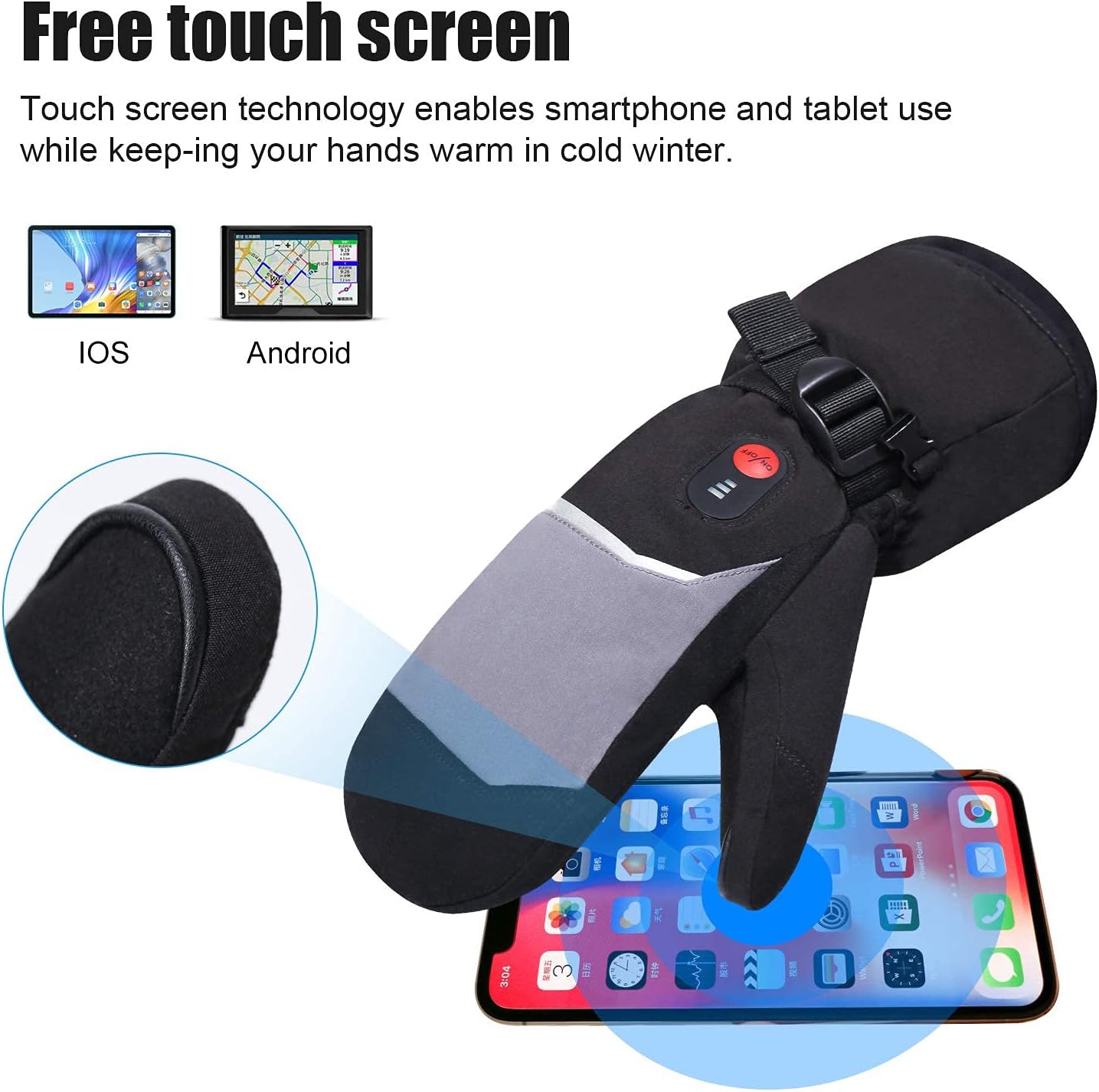 - 【Sensitive Touchscreen-Funktion】 Dieser neue elektrische Handschuhhandschuh mit neuem Design für die Touchscreen-Funktion verfügt über ein U-förmiges Design am Daumen, mit dem Sie Ihre Telefon- / I-Pads berühren können, ohne die Handschuhe