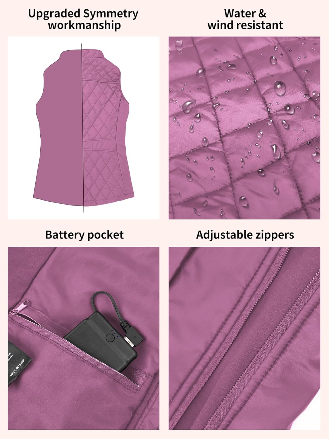 - Durchdacht und einzigartig: Der seitliche Reissverschluss ist verstellbar, um Ihnen besser zu passen. Diese wärmeweste damen wird mit Akku betrieben, um Ihnen bei kaltem wetter mehr Energie zu geben. Die beheizte weste verfügt über zwei seitliche