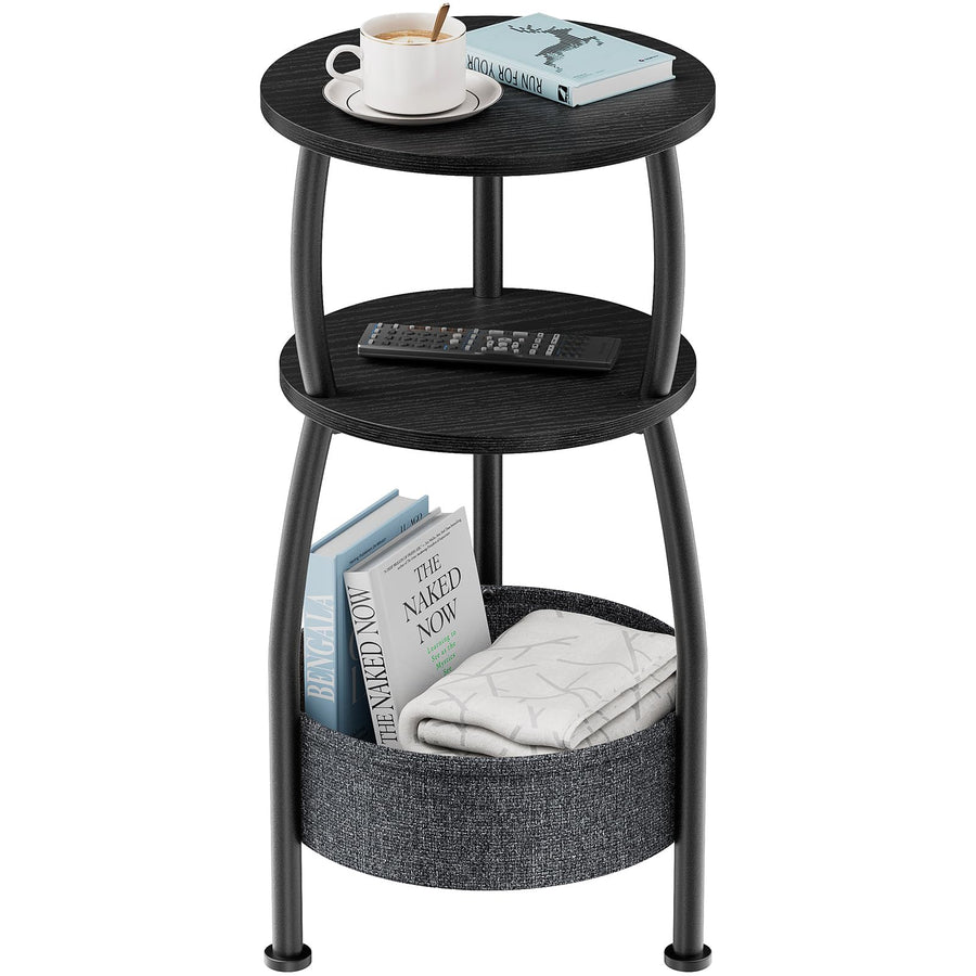 - 【Perfekt für kleine Plätze】Der 30 x 61 cm (Ø x H) Durchmesser und Höhe ist dieser Beistelltisch ideal für beengte Räume. Er verfügt über zwei Ablageebenen und eine integrierte, 30 x 10 cm (Ø x H) grosse Stofftasche, die alles griffbereit