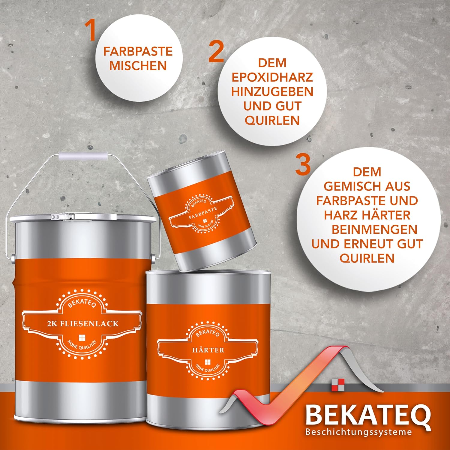 BEKATEQ 2K Fliesenfarbe für Boden- und Wandfliesen, 5kg Silbergrau seidenglänzend, aussen & innen -