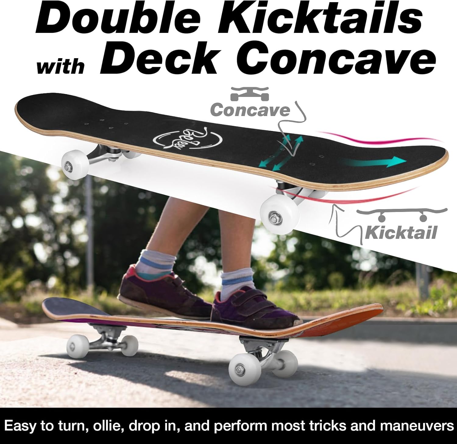 - Einfache Steuerung: Symmetrisches konkaves Design mit doppeltem Tritt für einfacheres Bremsen und mehr Energie von den Fersen bis zu den Zehen. Das wasserdichte, rutschfeste Schmirgelband bietet eine hervorragende Traktion zwischen Ihren Schuhen und dem