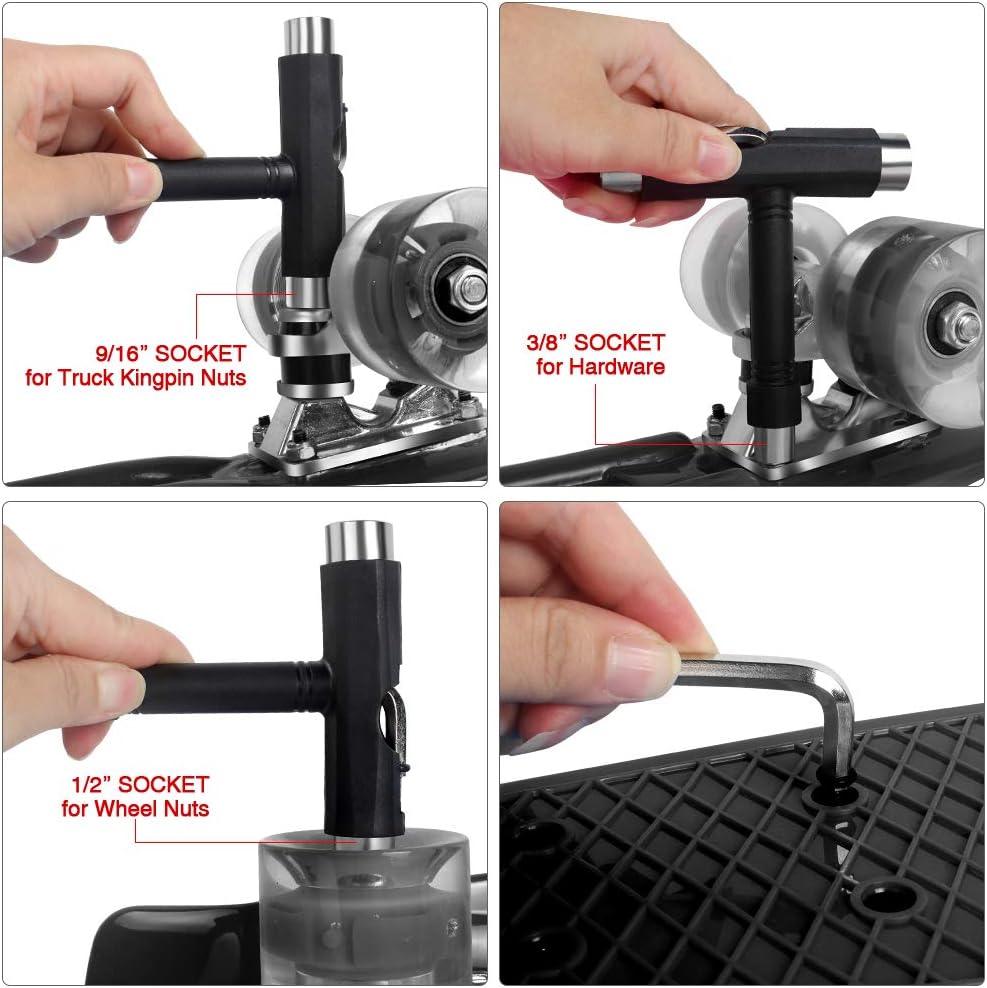 • Smooth & Speedy Ride: Das cruiser board verfügt über weiche Pu Räder, Hochgeschwindigkeits abec-7-lager und eine hervorragende Stossdämpfung. Kommt mit All-in-one Skate T-tool, hat alles, was Sie brauchen, um Ihr Skateboard zu straffen oder zu