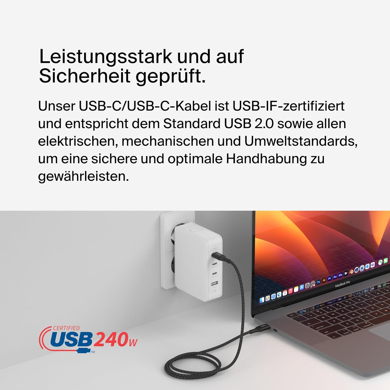 - OPTIMALE GESCHWINDIGKEIT: BoostCharge Ladekabel usb c eignen sich zum Schnellladen von Laptops, Tablets und Smartphones mit bis zu 240 W. Sie können ein 14"-MacBook Pro in 31 Min. von 0 auf 50 % sowie Geräte wie iPad Air 5 und Samsung S23