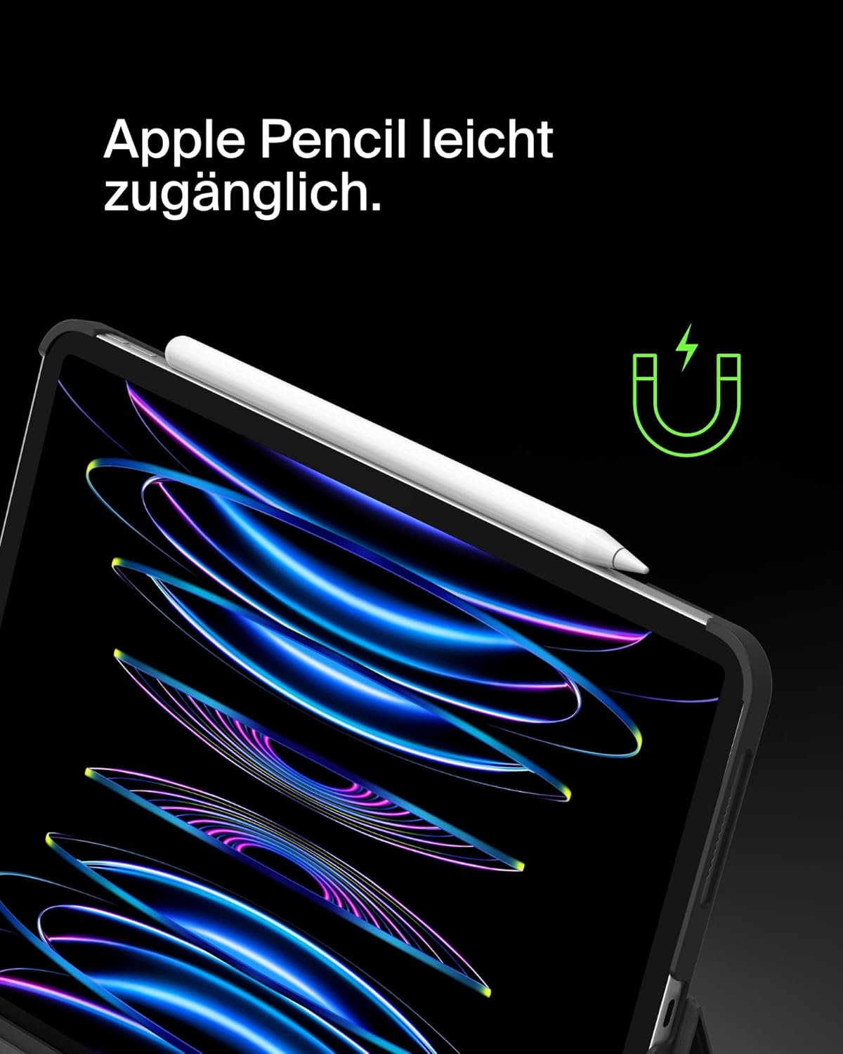 • MAGNETISCHE BEFESTIGUNG DES APPLE PENCIL: Beim Entwurf dieser Tastatur mit Halter haben wir daran gedacht, wie leicht man den Apple Pencil verlegen kann und haben eine magnetische Befestigungsmöglichkeit integriert, damit Sie ihn nicht verlieren.