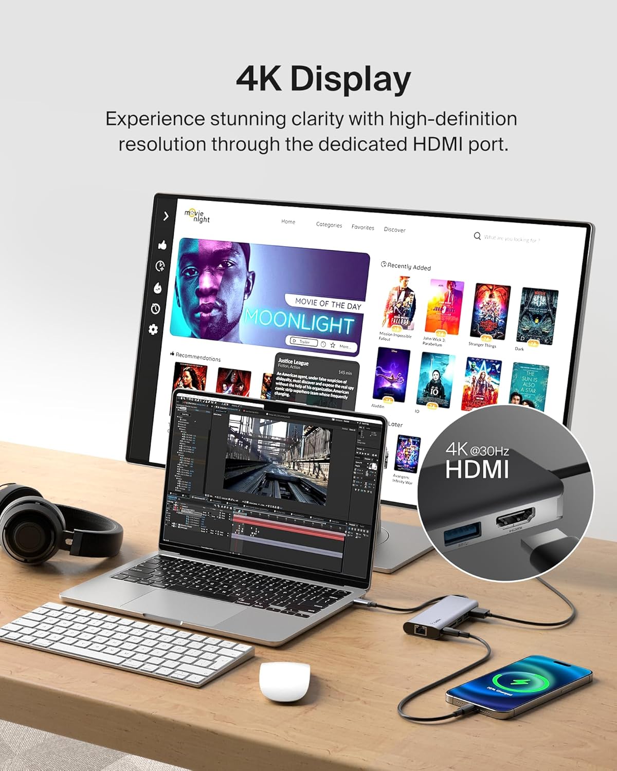 - Ermöglicht über einen USB-C-Port die Nutzung folgender Anschlüsse: HDMI, 2x USB-A 3.0 BC1.2, Ethernet, SD-Kartenleser und USB-C PD