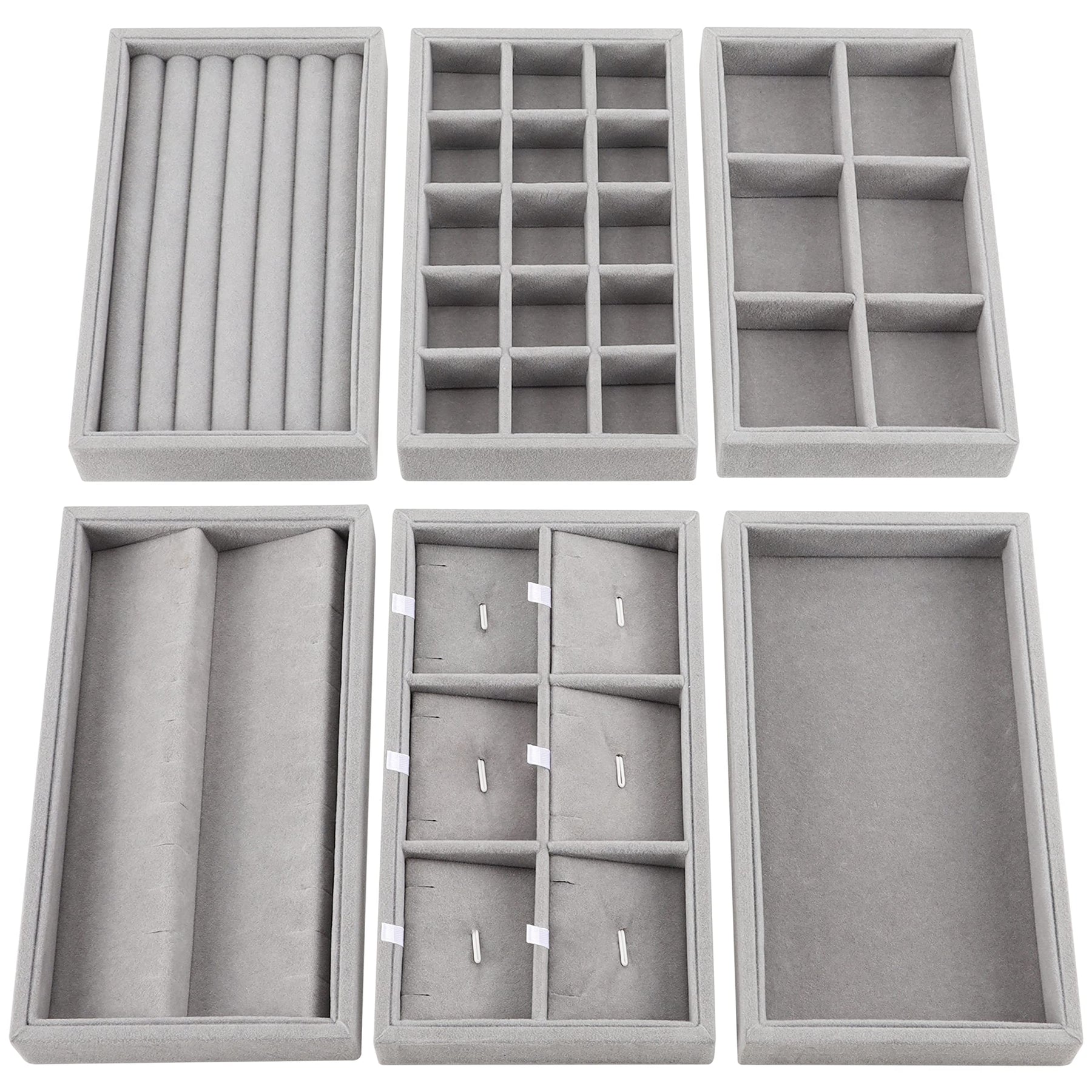 - JEWELRY ORGANIZER: Unser Set enthält 6 Jewellery Organizer mit den Massen B12 x L21 x H2,5 cm und insgesamt 36 verschiedenen Fächern. Die Schmuck Organizers haben verschiedene Einsätze für verschiedene Arten von Schmuck. Jedes Schmuck Tablett ist aus