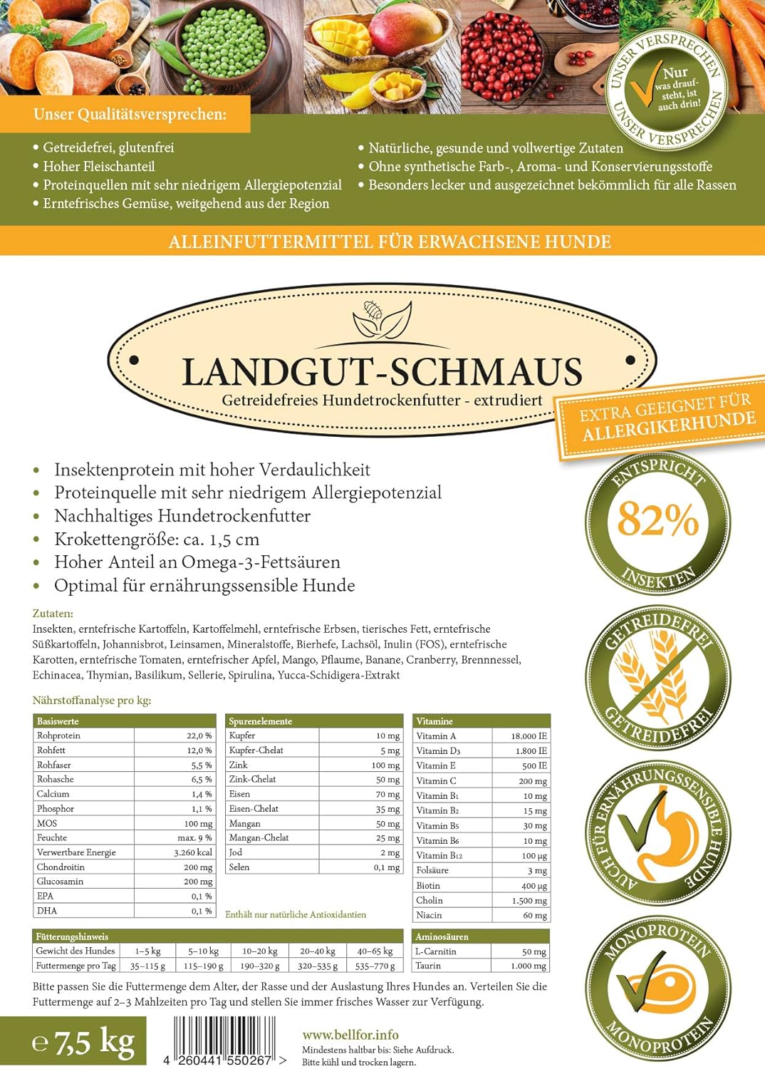 - NACHHALTIGE ALTERNATIVE: Insektenzucht benötigt wenige Ressourcen im Vergleich zur Fleischproduktion; Bellfor Landgut-Schmaus ist nachhaltige Hundenahrung