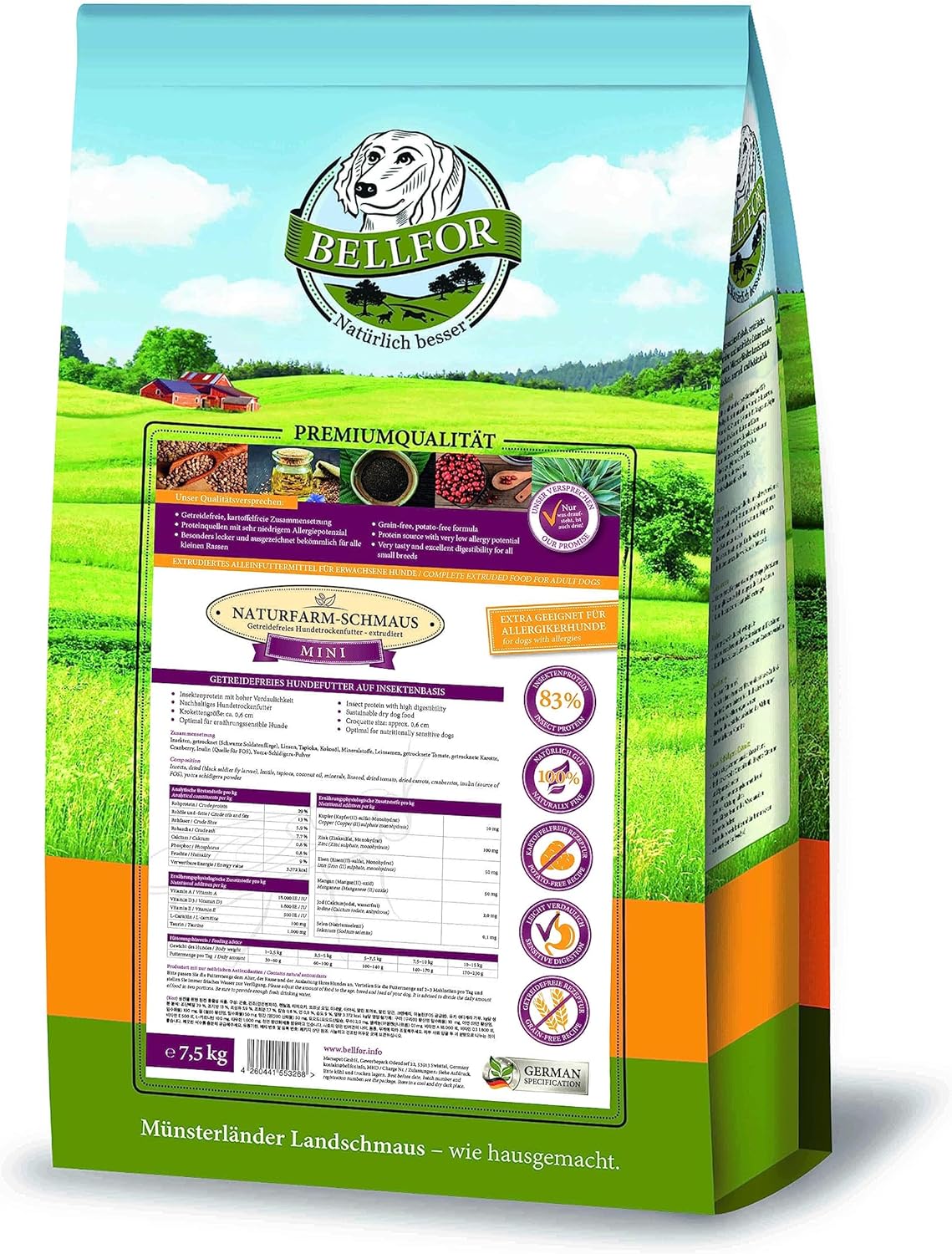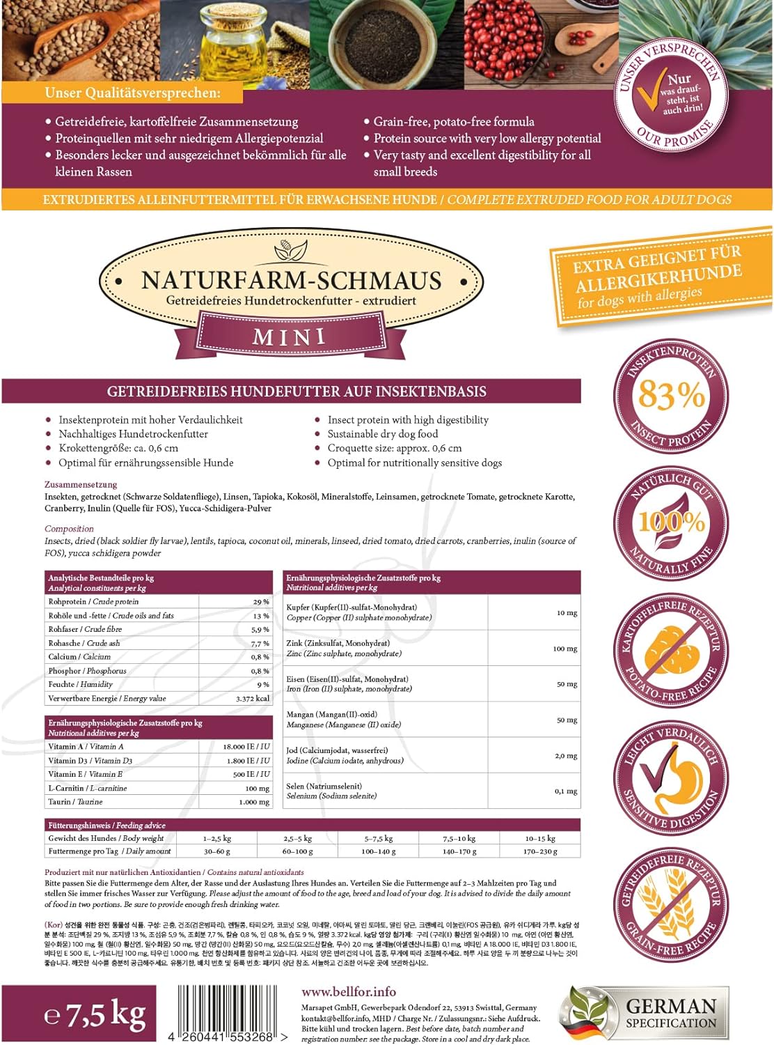 Bellfor Naturfarm-Schmaus Mini Hypoallergenes Getreidefreies Hundetrockenfutter mit Insekten 7,5 kg