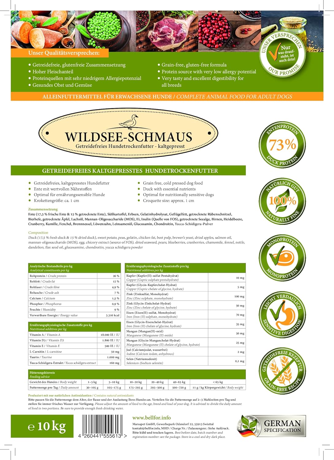 bellfor Wildsee-Schmaus Hochwertiges Getreidefreies Hundetrockenfutter mit Ente mit hoher Verdaulich