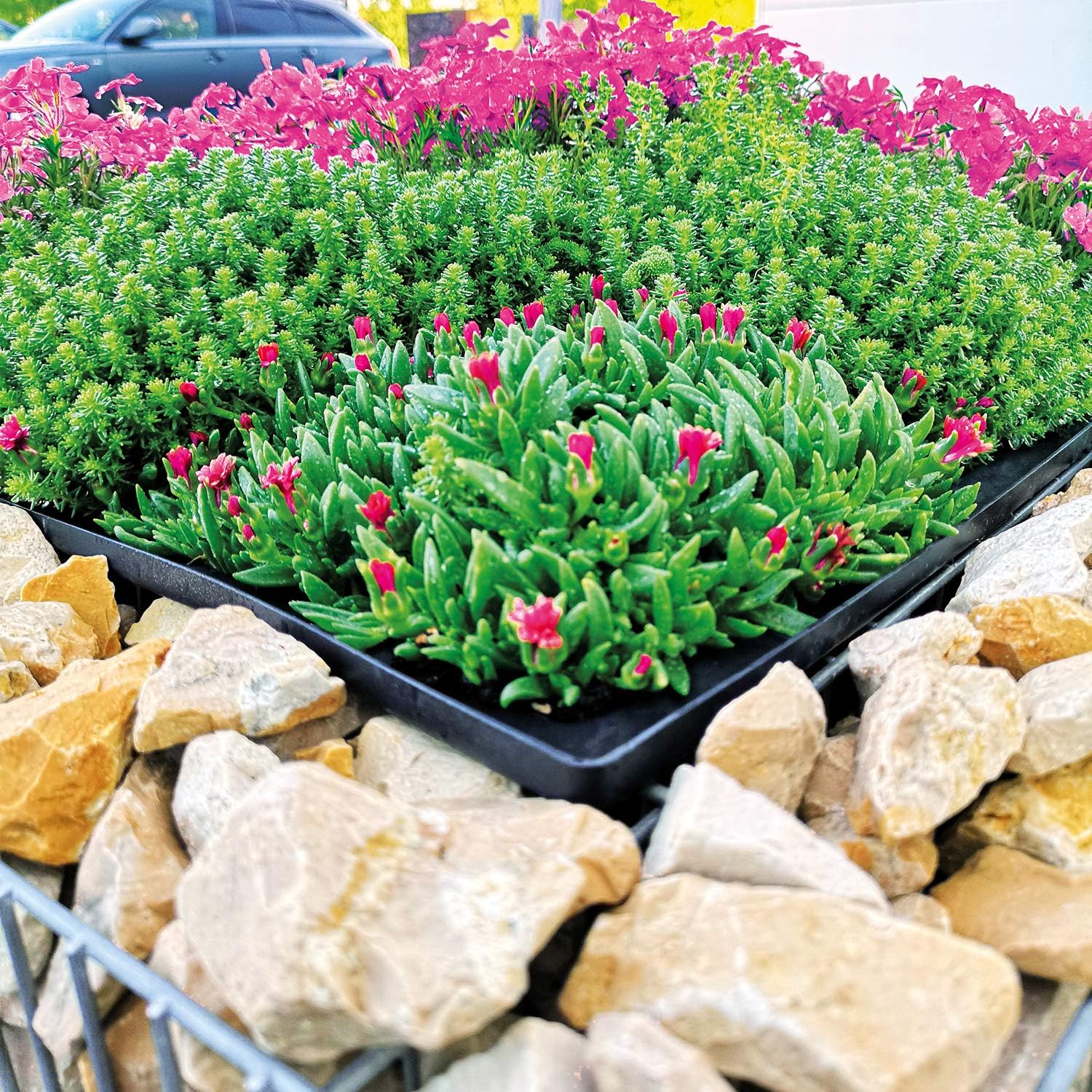 - Stahldraht Zink-Aluminium verzinkt - Masse ca. 75 x 75 x 53 cm - Steinbedarf 150 kg - Steinkörnung 25-60 mm - Füllmenge Erde ca.30 l - Maschenweite 2,5/10 cm - Drahtstärke 4/3 mm.