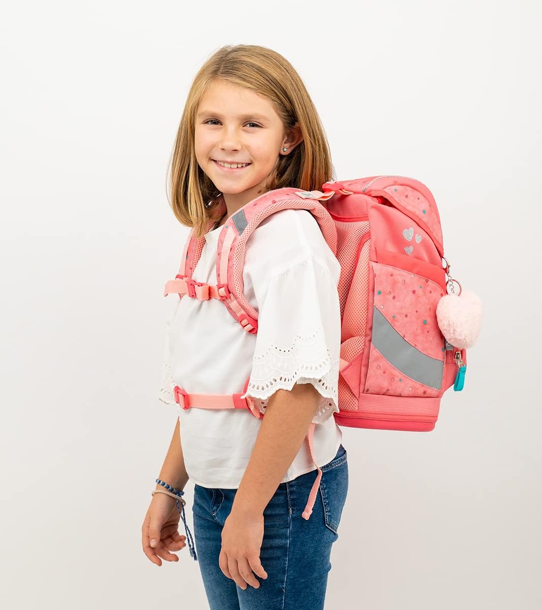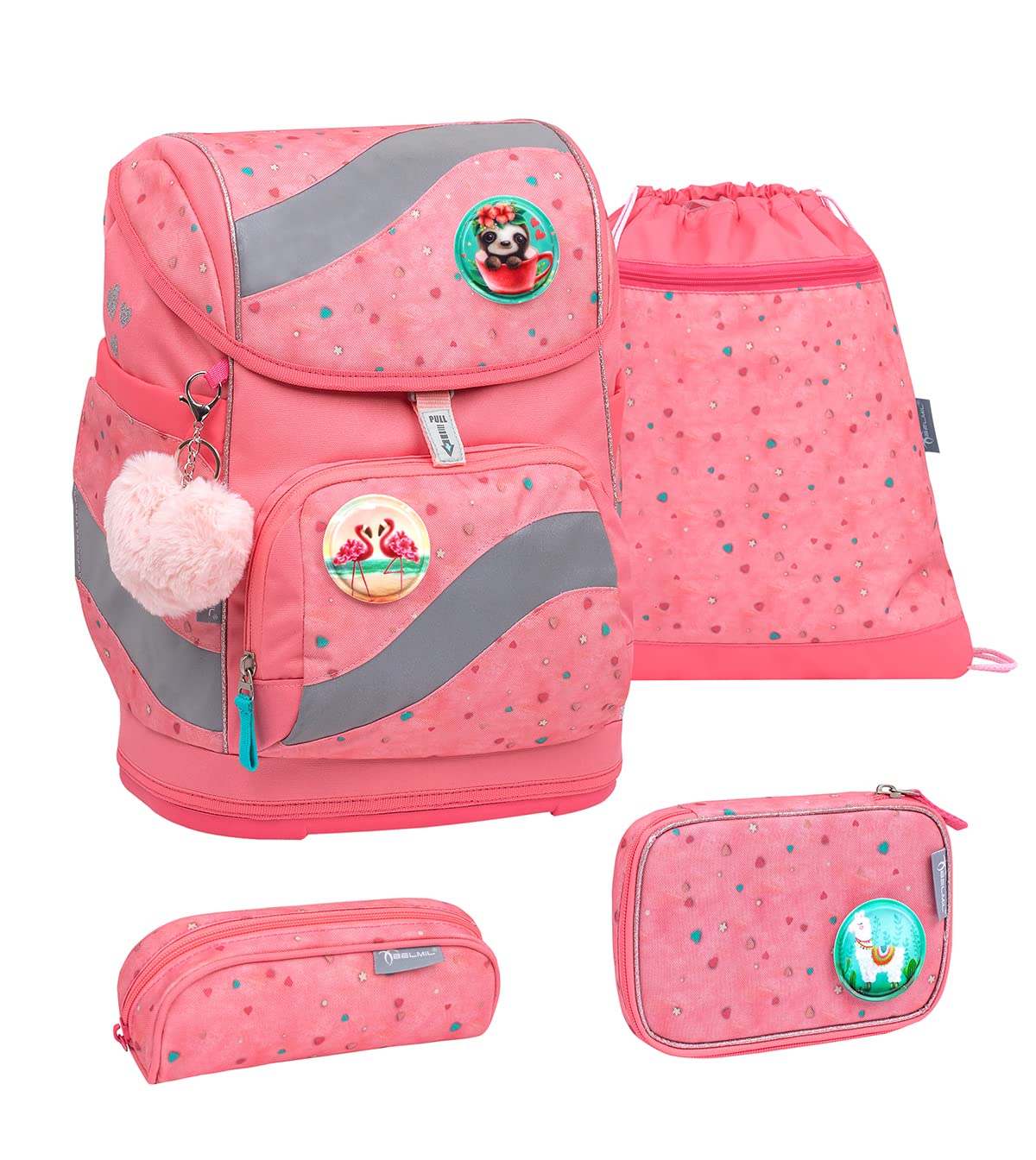 - ergonomischer Schulranzen, Schulrucksack-Set 5-teilig mit Brustgurt, Hüftgurt, geeignet von der 1. - 4. Klasse