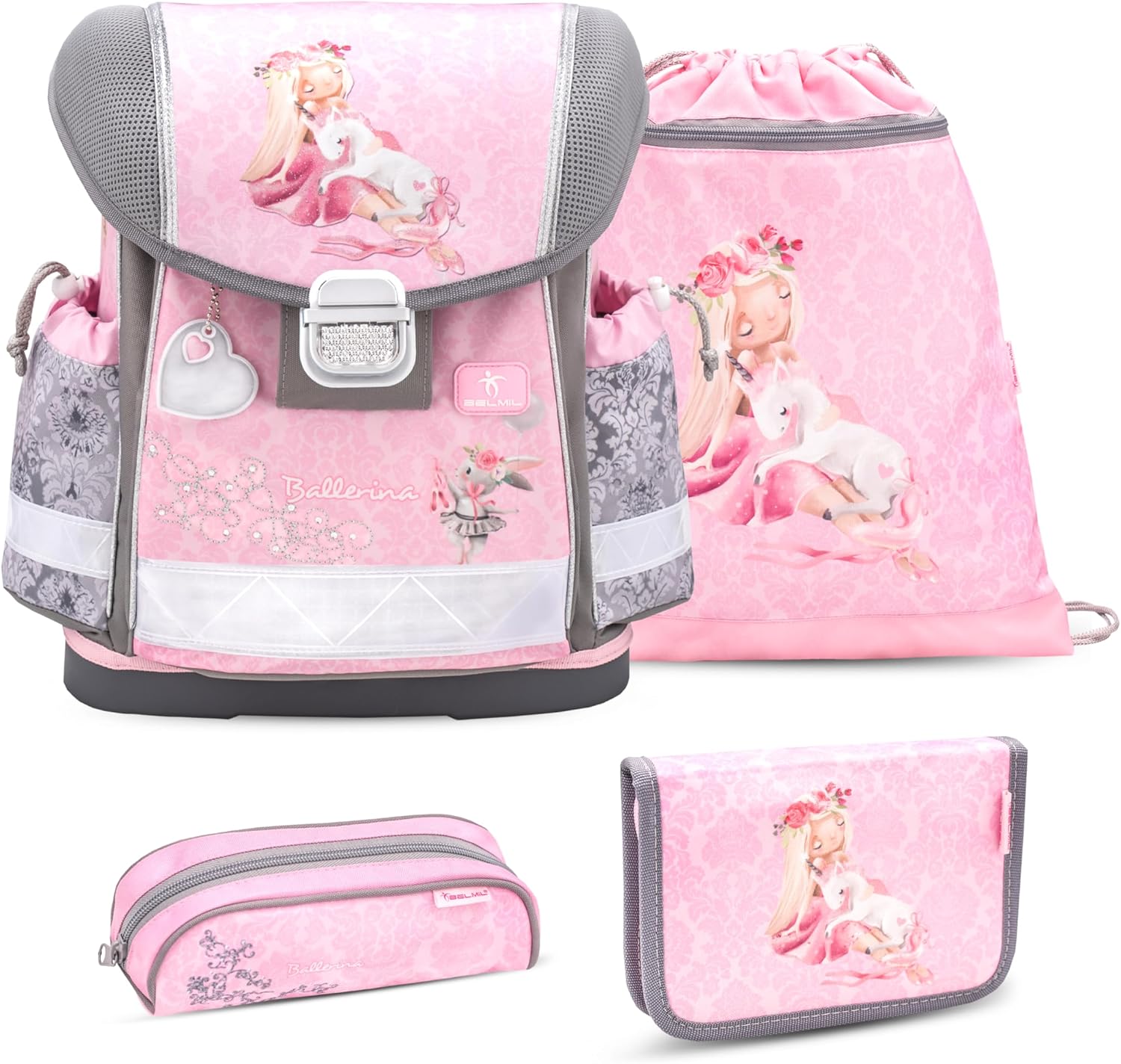 - Ergonomisches Schulranzen-Set 4-teilig mit Brustgurt für die Grundschule 1. - 3. Klasse