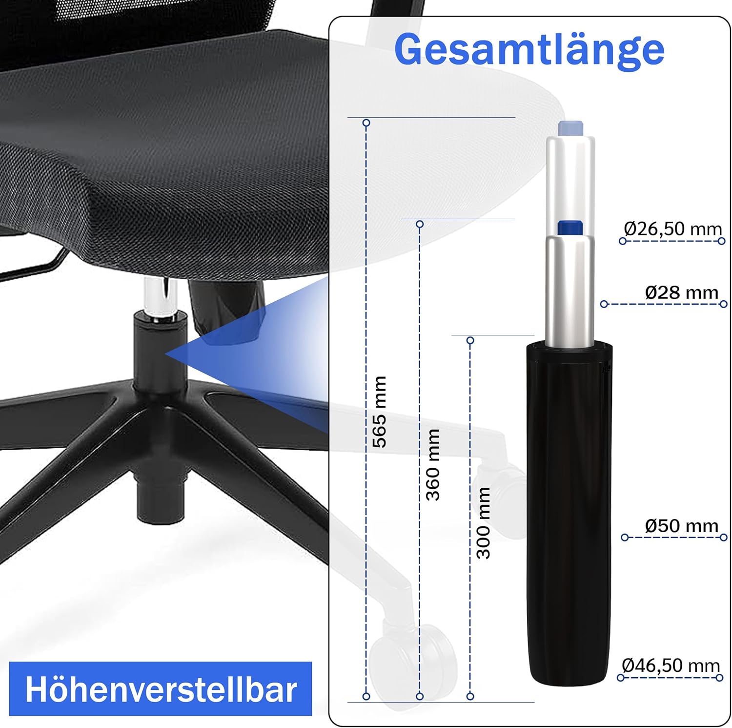 • Einfache Montage – Die Gasdruckfedern für Bürostühle lassen sich dank der konischen Steckverbindung mühelos installieren und erfordern kein kompliziertes Werkzeug. Sie bieten eine reibungslose Anpassung der Sitzhöhe, um Ihnen maximalen Komfort und