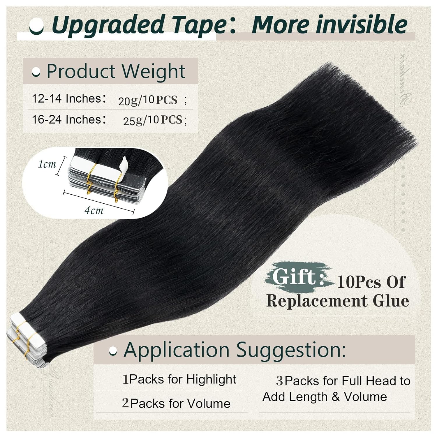 - đ©ăInvisible Tape in Hair Extensionsă: 10pcs/Packung, 10 ErsatzbĂ€nder. FĂŒr 12-14 Zoll wiegt jede Packung 20g. FĂŒr 16-22 Zoll wiegt jede Packung 25g. Die unsichtbarsten und natĂŒrlich aussehenden HaarverlĂ€ngerungen, die Ihrem Haar so natĂŒrlich
