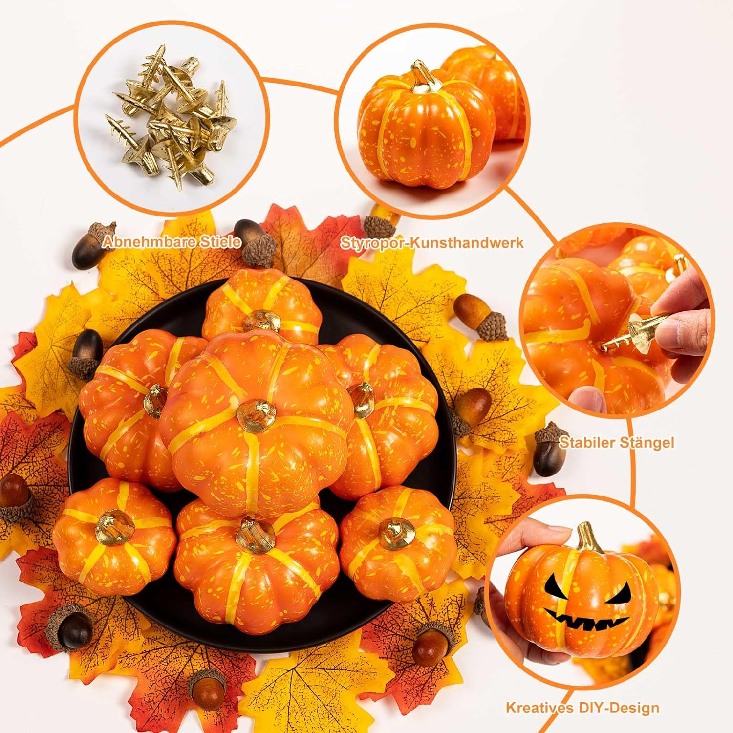- 🎃【Breites Einsatzspektrum】Dieses Set künstlicher Kürbisse eignet sich perfekt für Ihre DIY-Herbsthochzeit, Halloween, Thanksgiving-Tischdekoration, Herbsttischdekoration, Innen- und Aussendekoration, Garten, Veranda, Heimdekoration. Saisonale