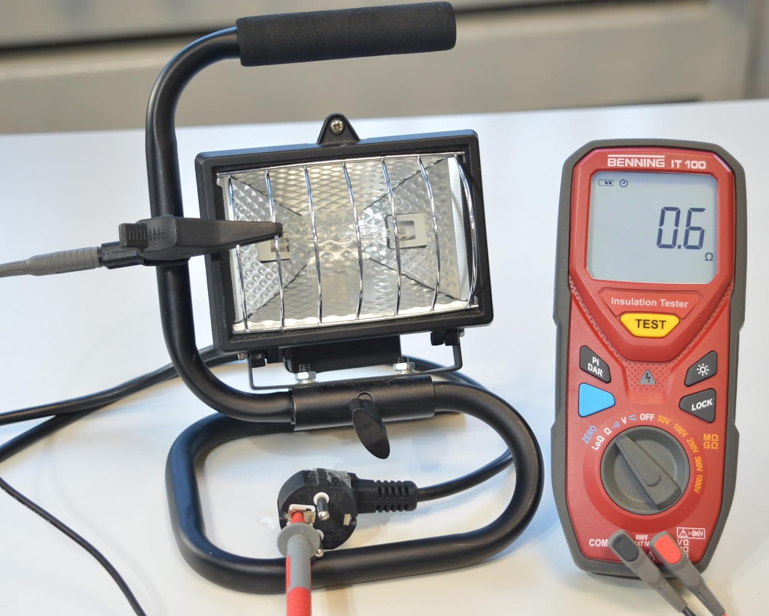 - Nullabgleich der Messleitungen bis 2 Ω, Lock-Funktion für kontinuierliche Isolations- und Niederohmmessung