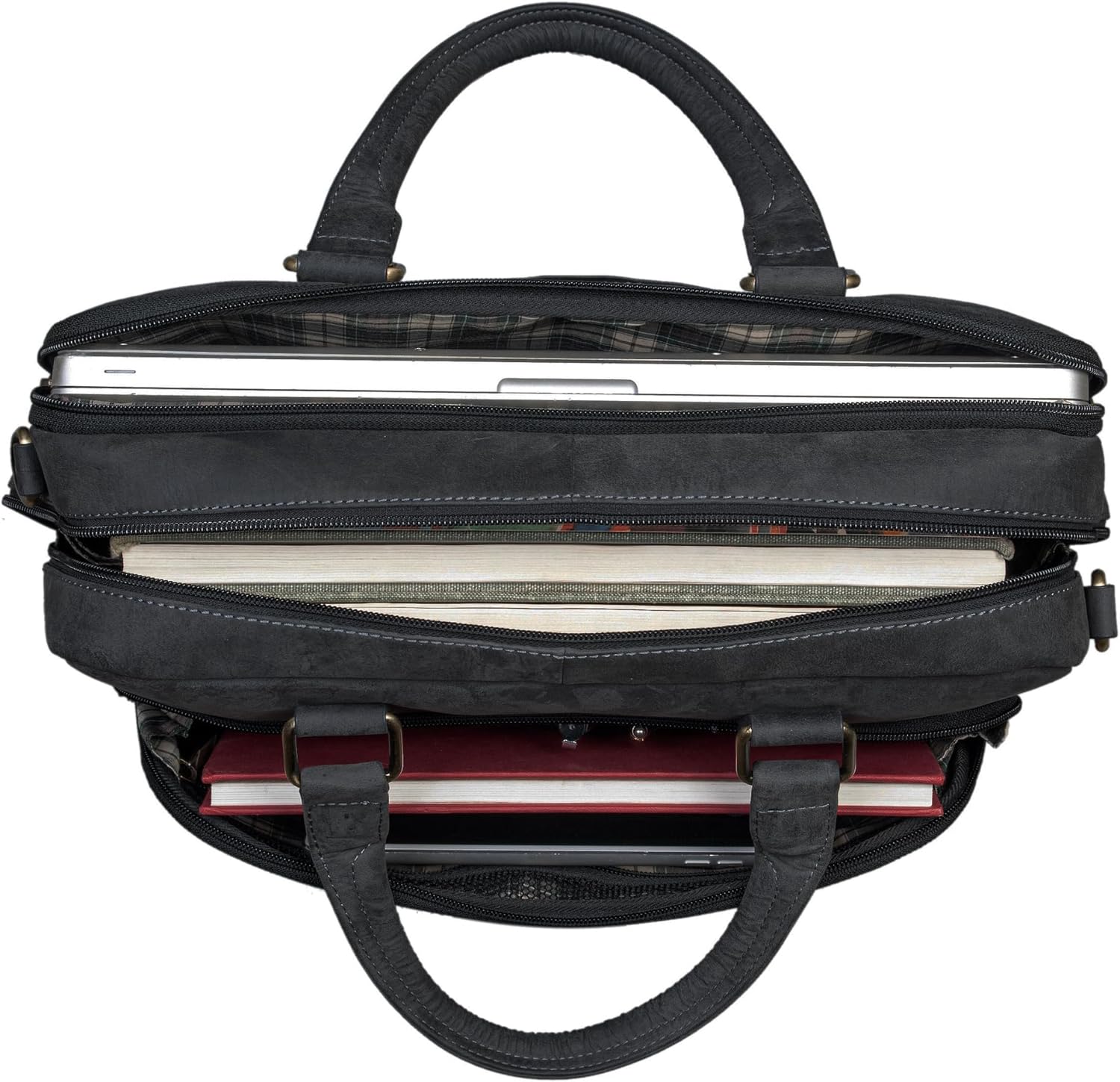 - · Platzwunder - Dieses grosse Ledertasche bietet viel Platz. Dieser tägliche Begleiter stellt genügend Stauraum zur Verfügung für Akten Laptop Büromaterial Tablet Dokumente und vieles mehr.