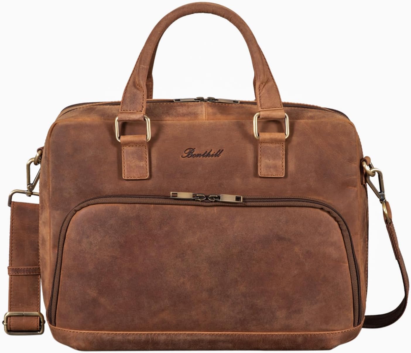 - · Benthill - Unsere Aktentaschen sind aus hochwertigem naturbelassenem Leder angefertigt. Stabil, Robust & mit Doppelnaht. Diese elegante Echtleder Arbeitstasche für Herren ist ein absolutes Must-Have.