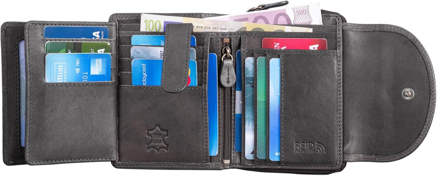 • Damen-Geldbörse - Sehr angenehmes weiches Leder, ein Tolles Material im leichten Vintage-Look. Ein echt hochwertiges Portemonnaie - durch das Langlebige Echt Leder werden Sie den unterschied fühlen.
