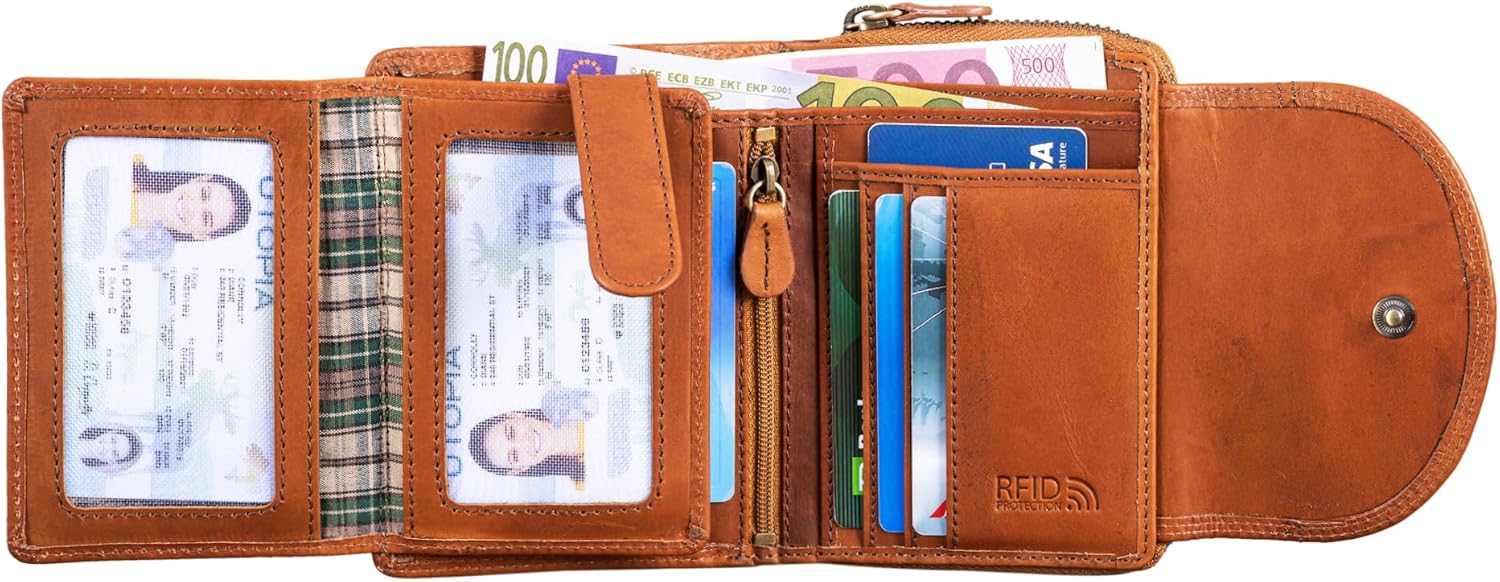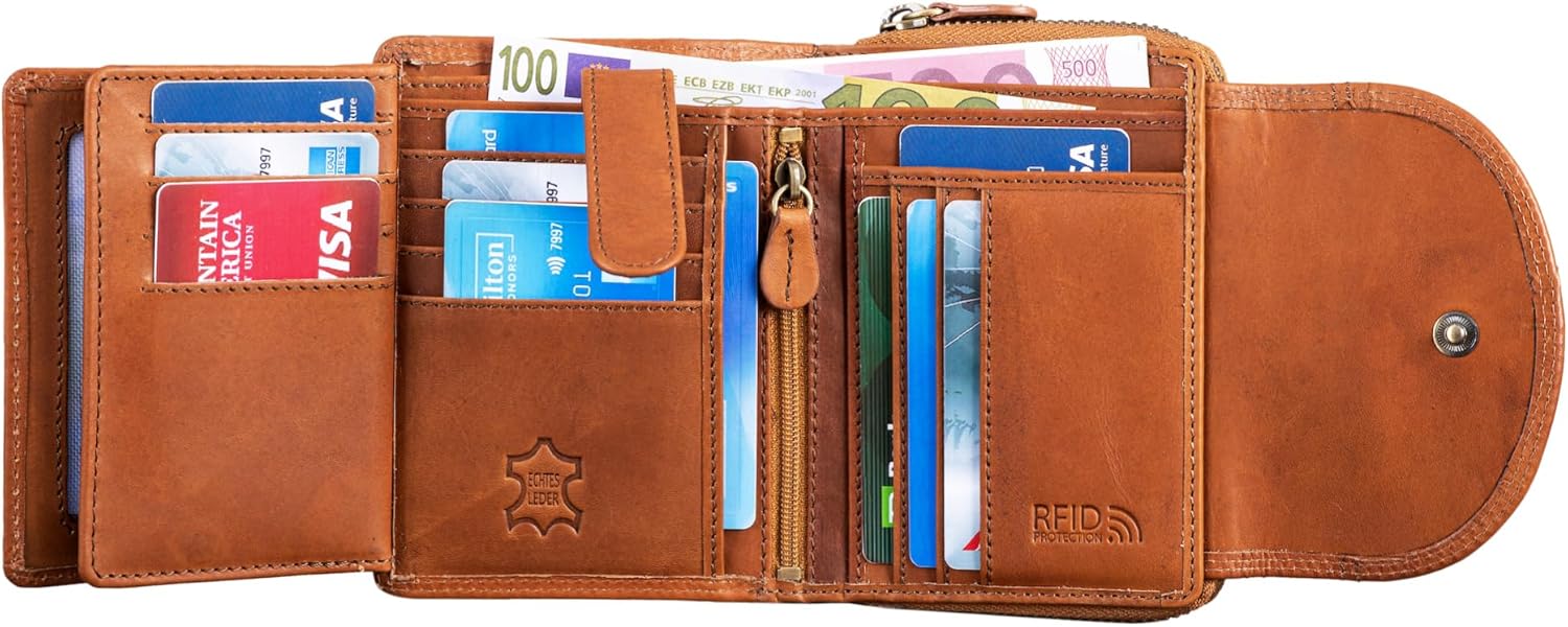 - Damen-Geldbörse - Sehr angenehmes weiches Leder, ein Tolles Material im leichten Vintage-Look. Ein echt hochwertiges Portemonnaie - durch das Langlebige Echt Leder werden Sie den unterschied fühlen.