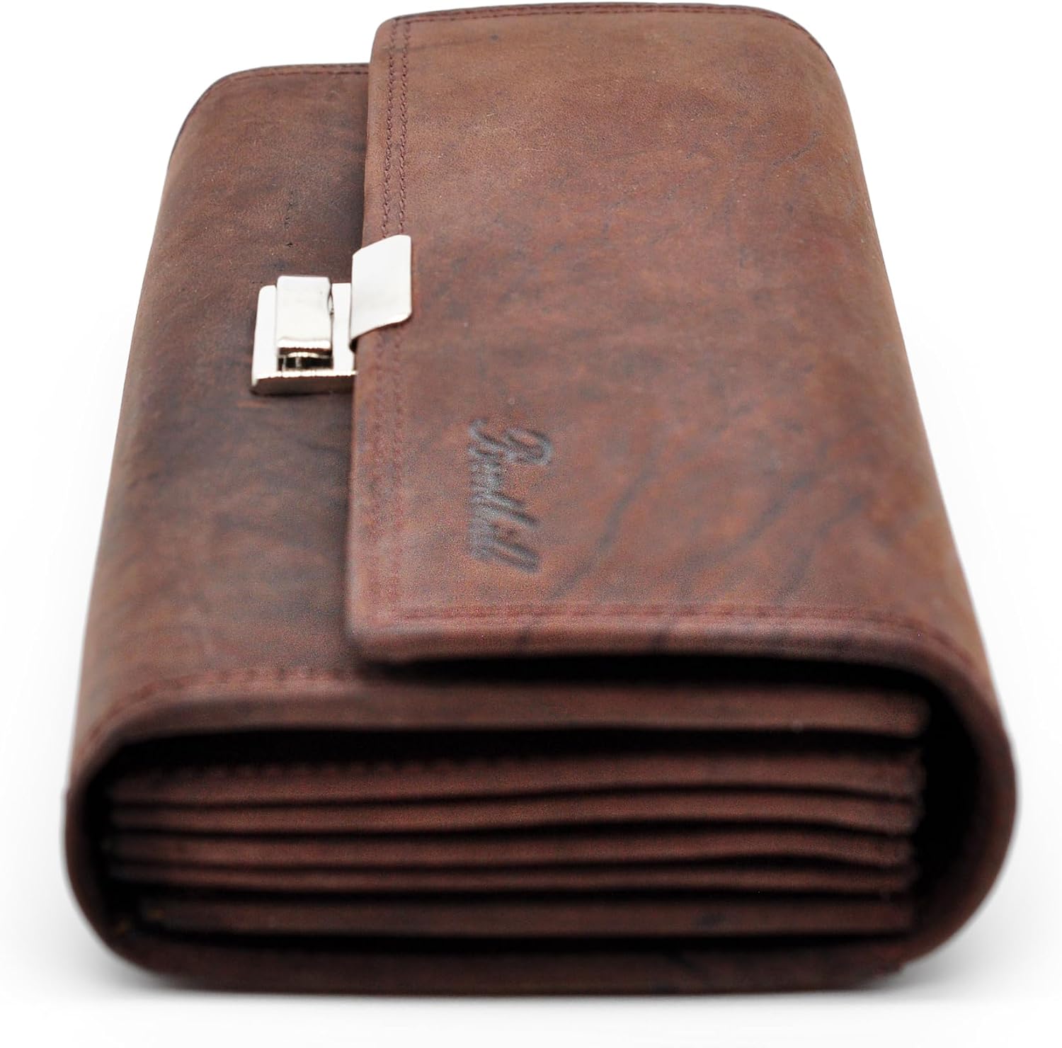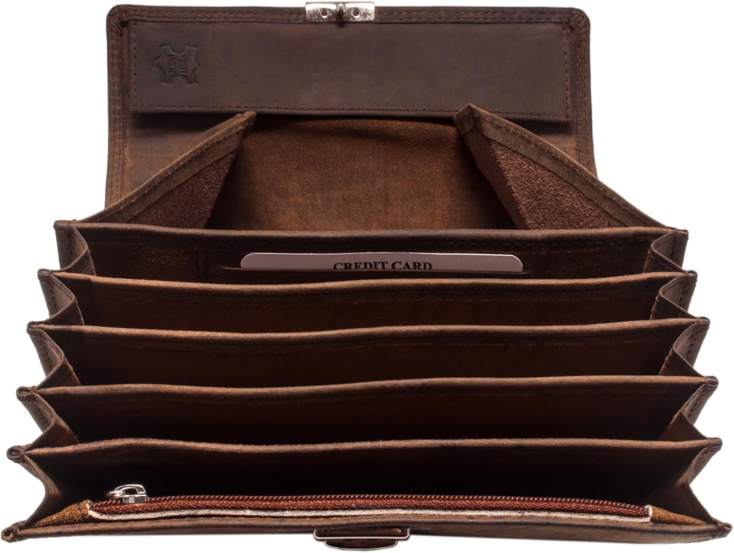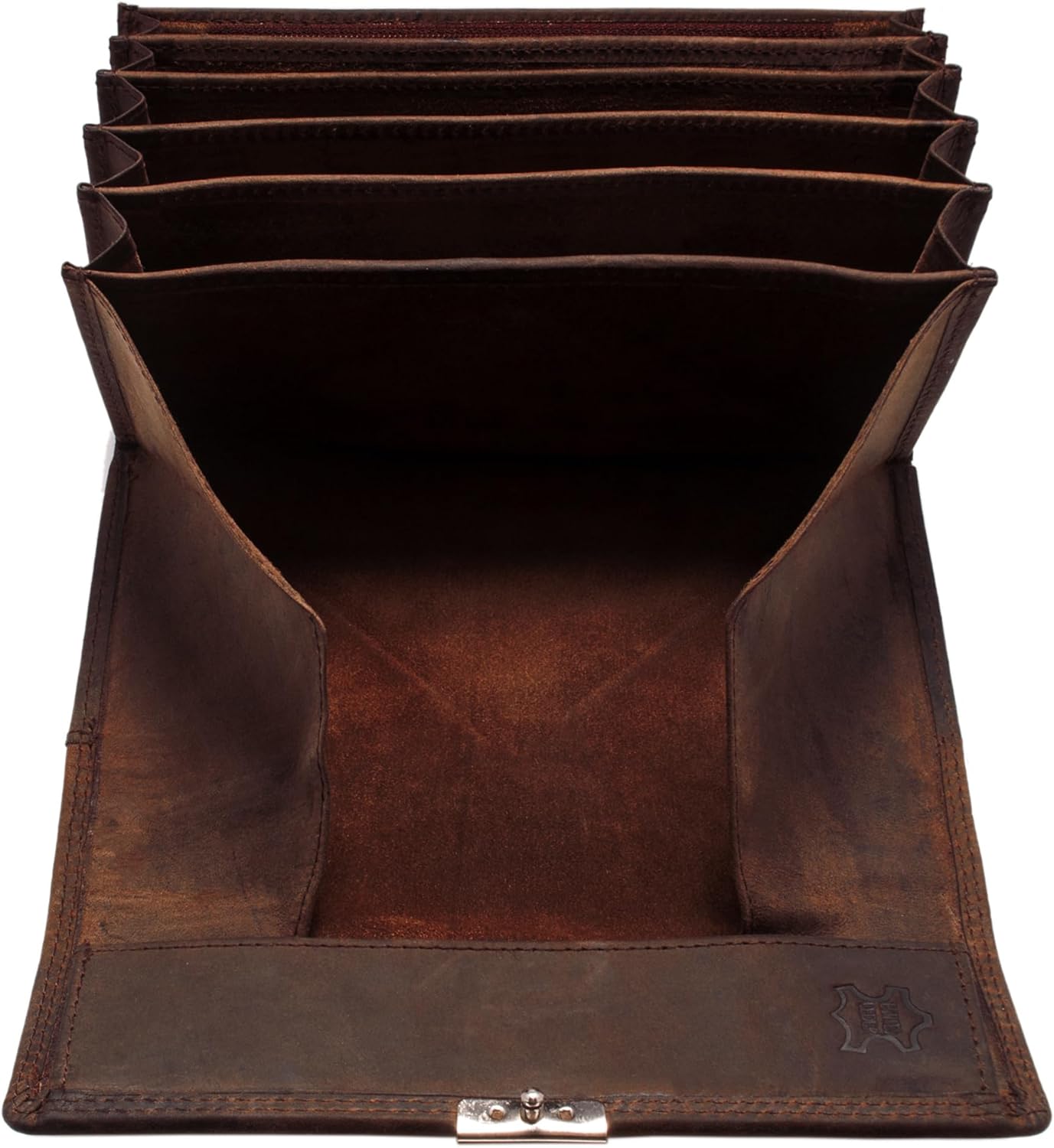 - Platzwunder - Dieses grosse Echt-Leder Portmonee bietet viel Platz für Kleingeld, Wechselgeld, Münzen und genügend Fächer für Geldscheine. Dieser tägliche Begleiter stellt genügend Stauraum zur Verfügung durch die vielen Geldscheinfächer und dem