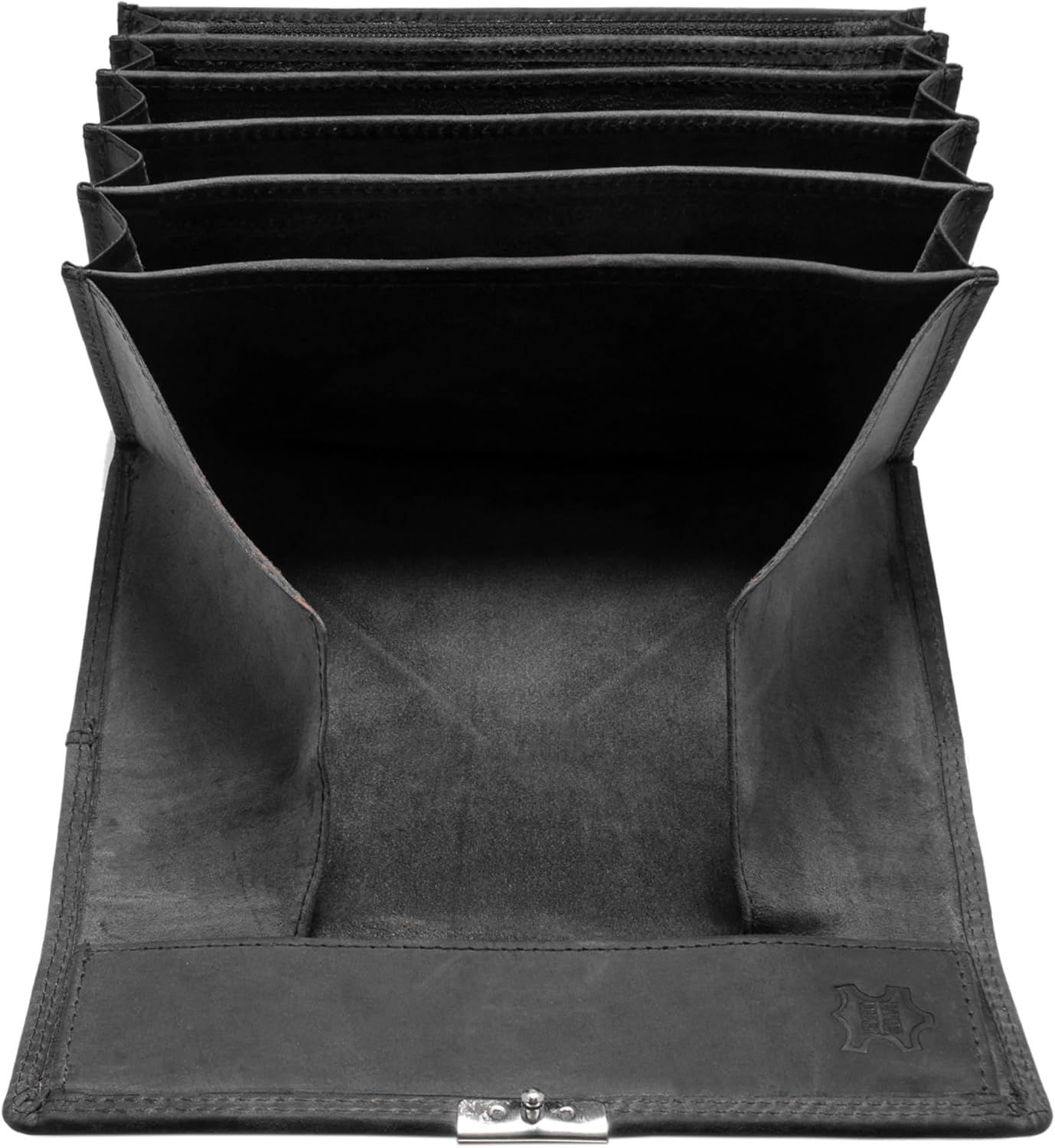 • Platzwunder - Dieses grosse Echt-Leder Portmonee bietet viel Platz für Kleingeld, Wechselgeld, Münzen und genügend Fächer für Geldscheine. Dieser tägliche Begleiter stellt genügend Stauraum zur Verfügung durch die vielen Geldscheinfächer und dem