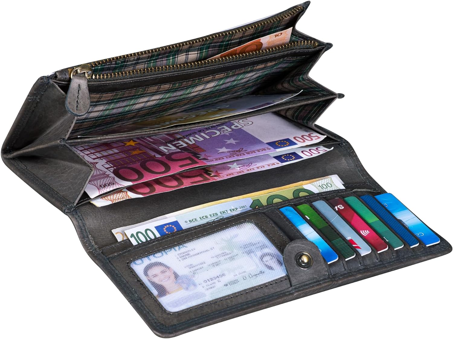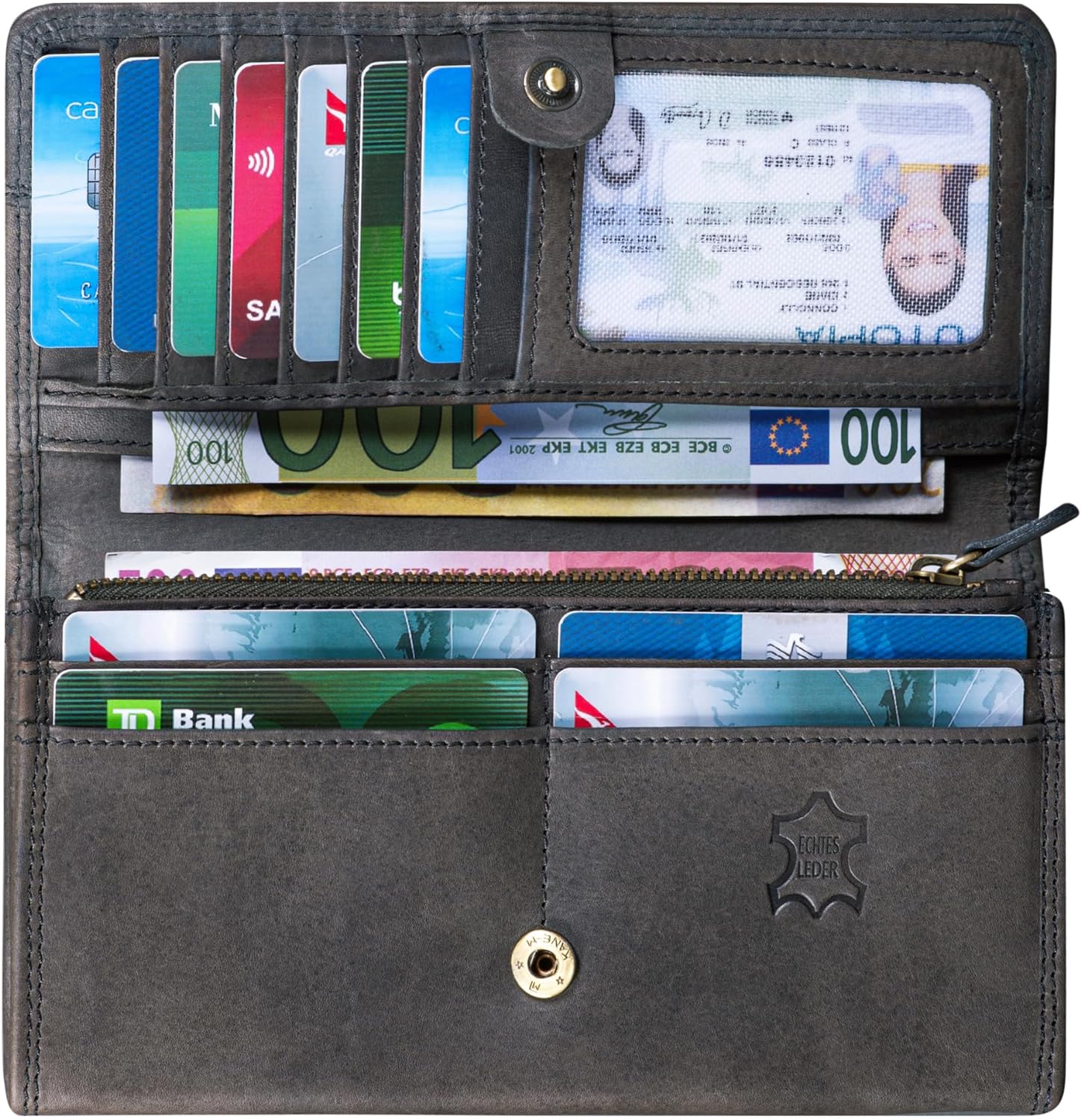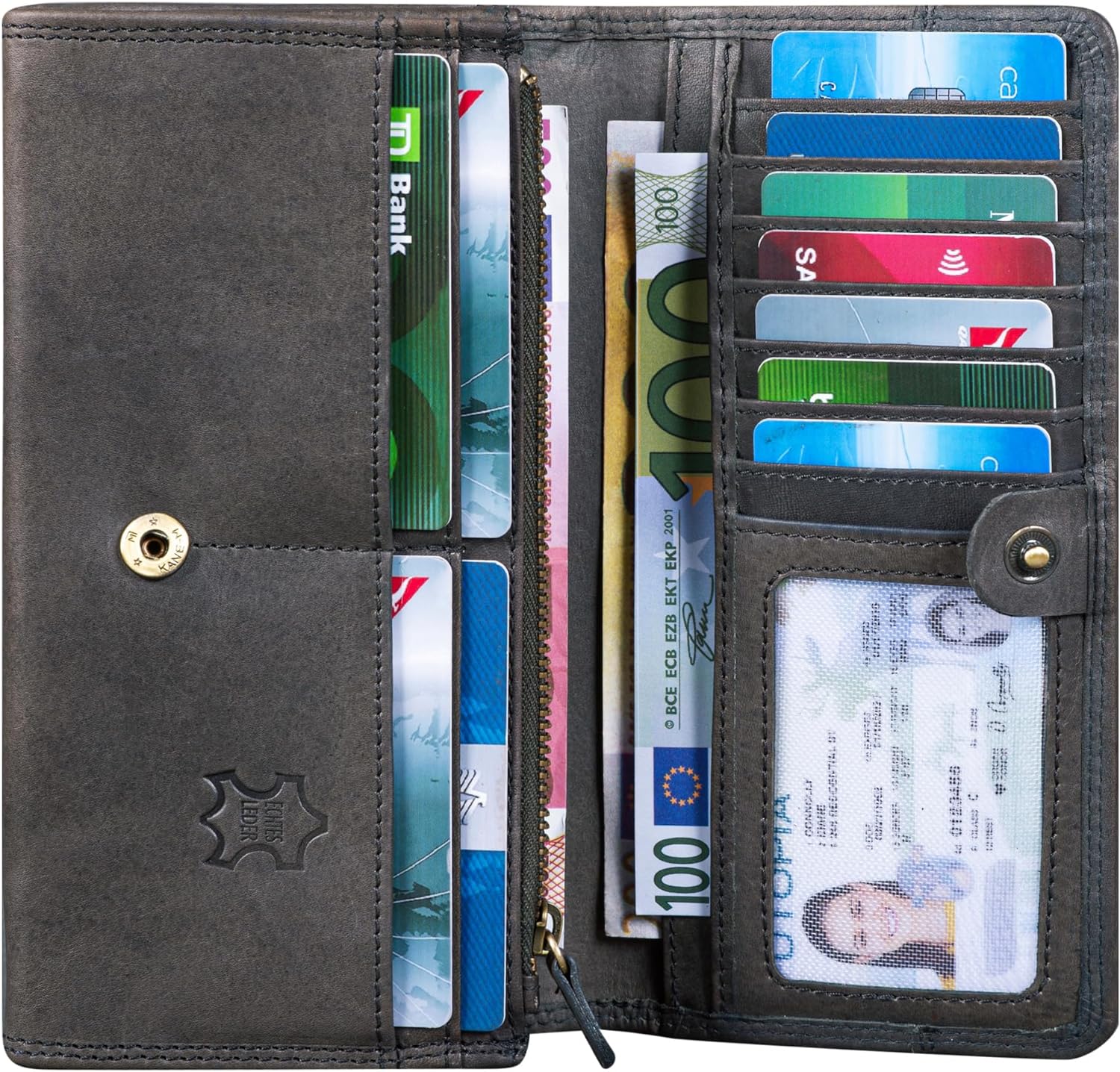 • · Damen-Geldbörse - Sehr angenehmes weiches Leder, ein Tolles Material im leichten Vintage-Look. Ein echt hochwertiges Portemonnaie - durch das Langlebige Echt Leder werden Sie den unterschied fühlen. Inklusive RFID-Schutz ist die Börse sicher gegen