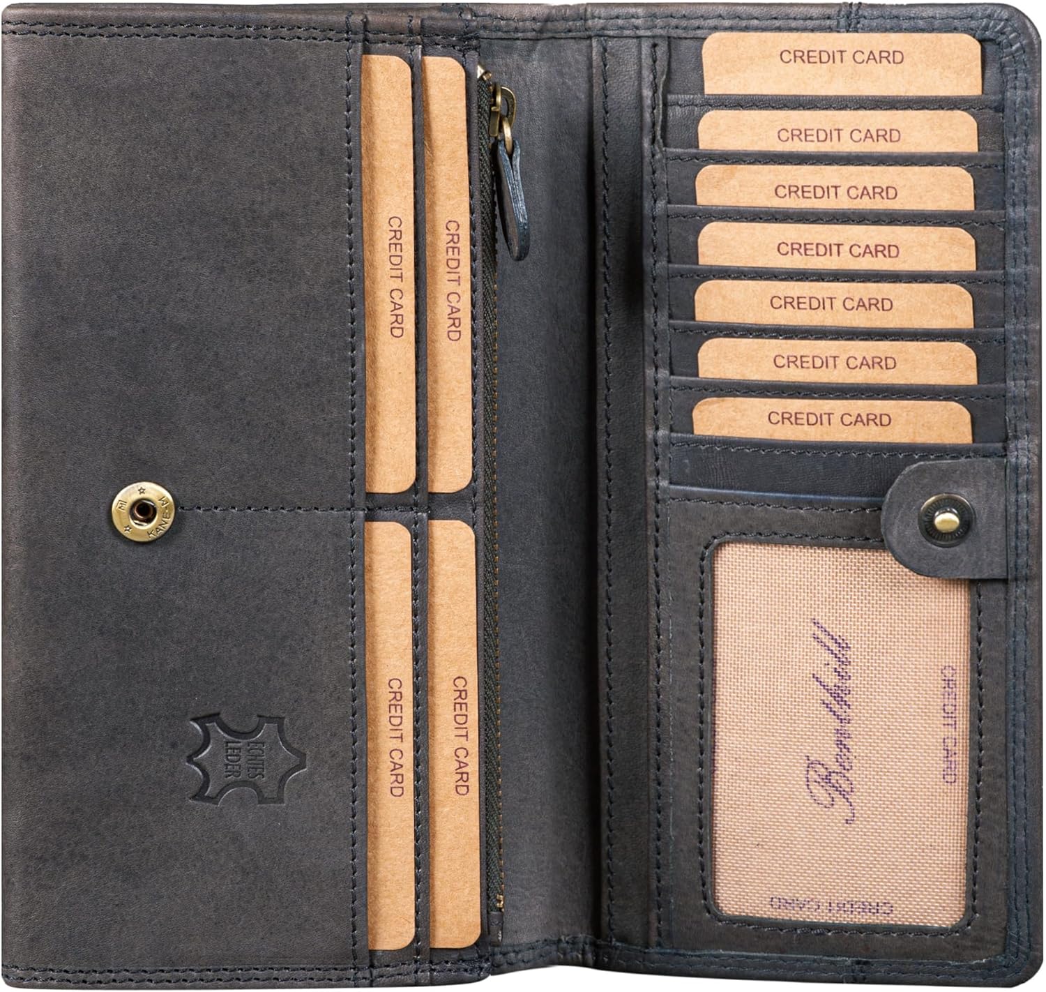 Benthill Lange Echt Leder Geldbörse für Damen | Damenbörse mit RFID Schutz | Grosses Portemonnaie mi