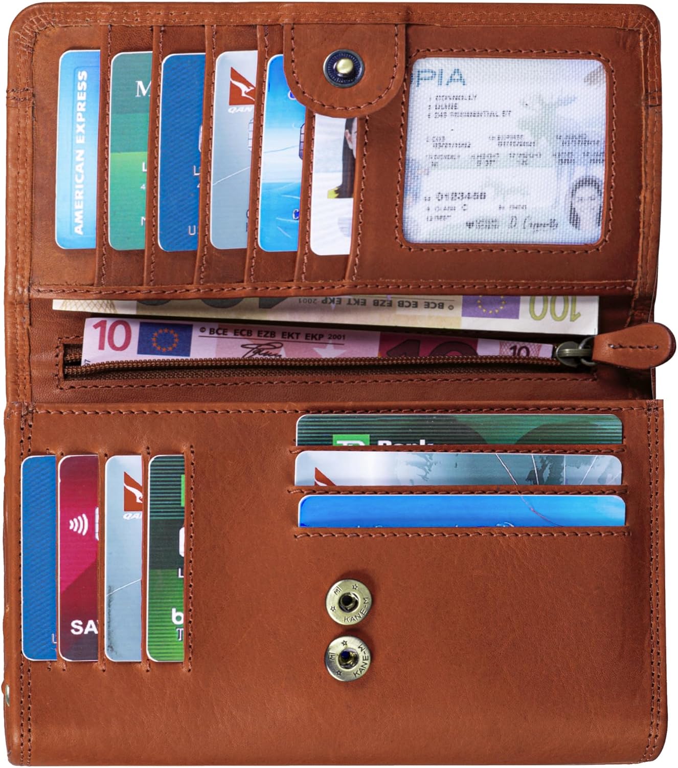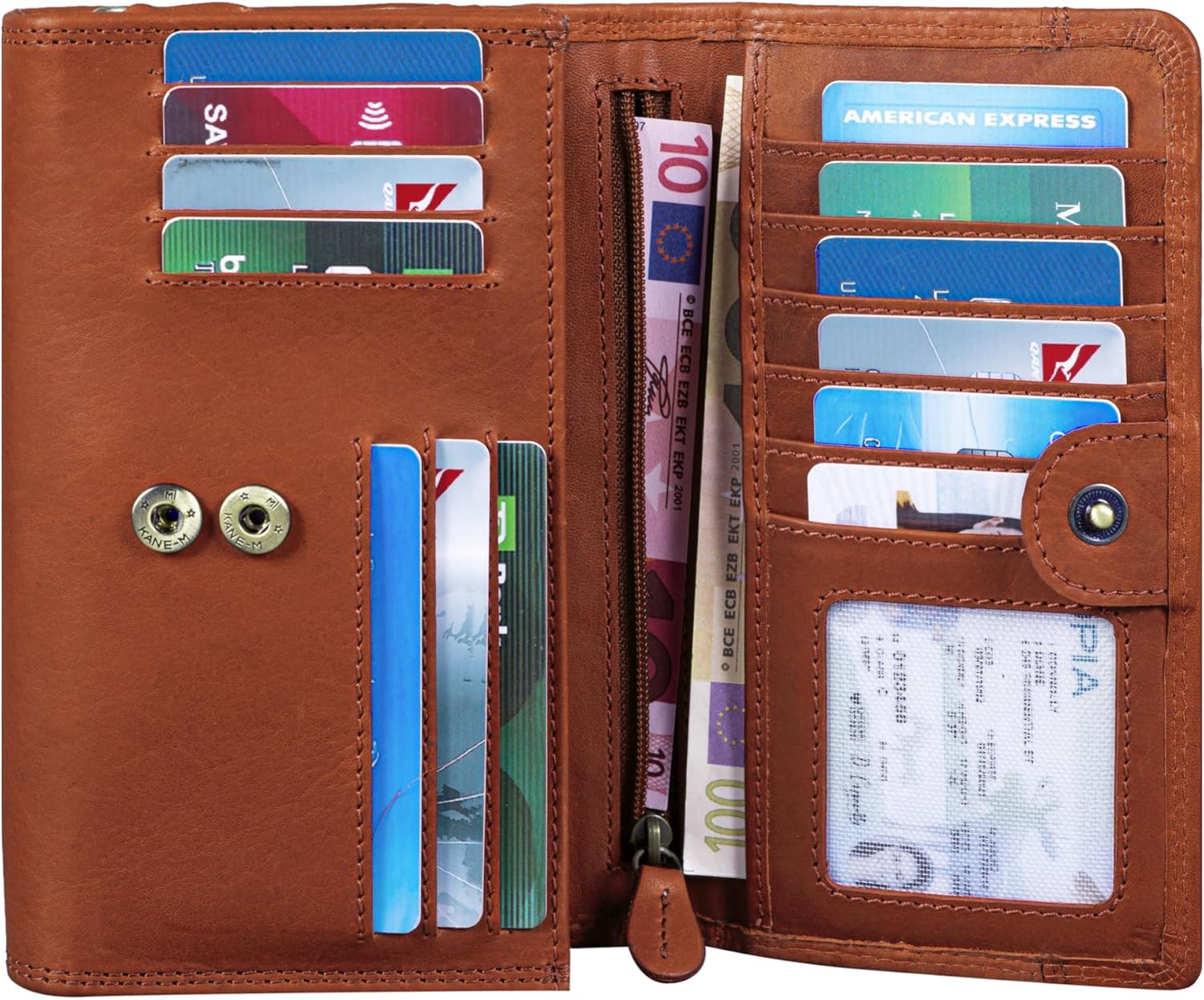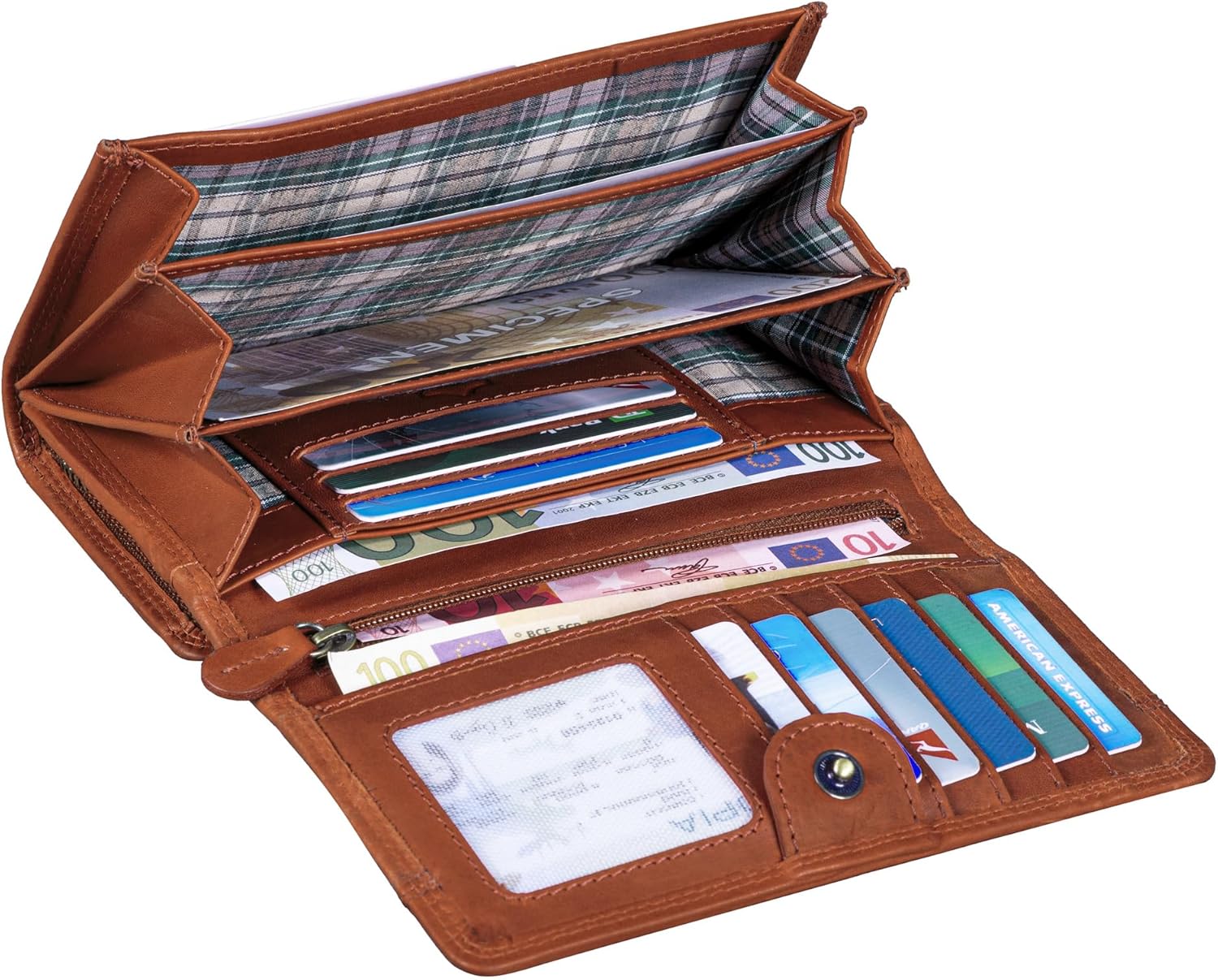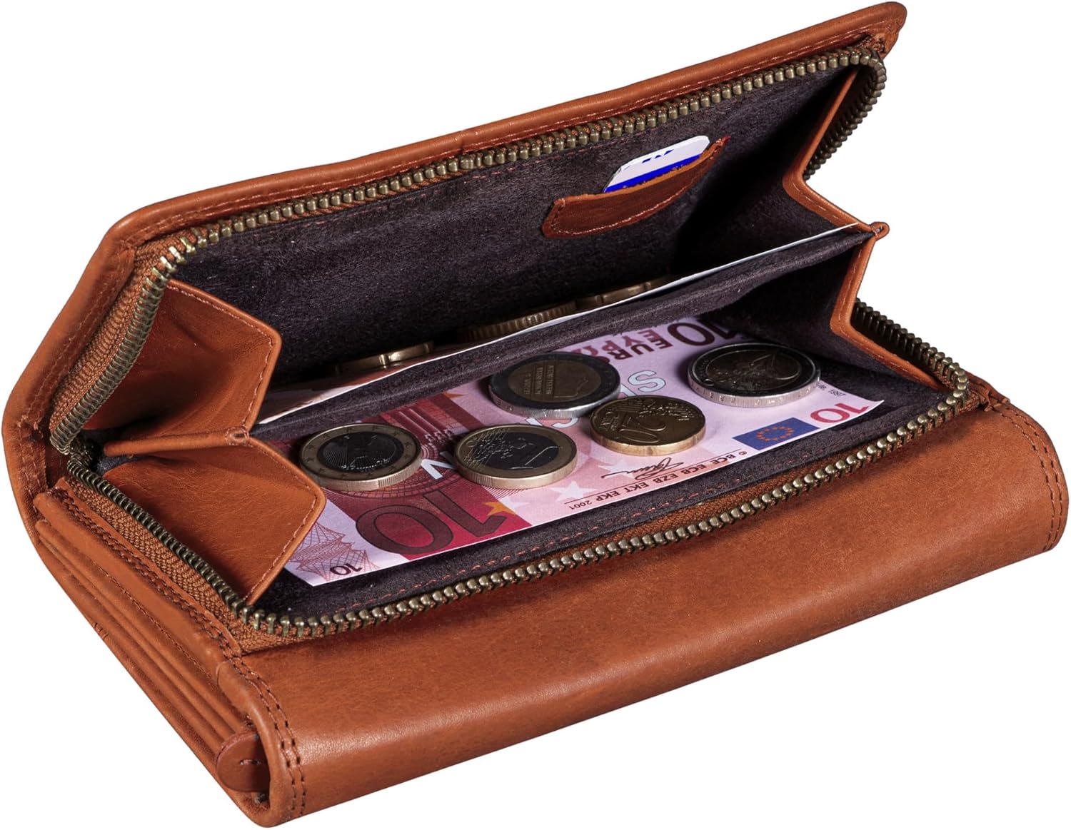 - · Damen-Geldbörse - Sehr angenehmes weiches Leder, ein Tolles Material im leichten Vintage-Look. Ein echt hochwertiges Portemonnaie - durch das Langlebige Echt Leder werden Sie den unterschied fühlen. Inklusive RFID-Schutz ist die Börse
