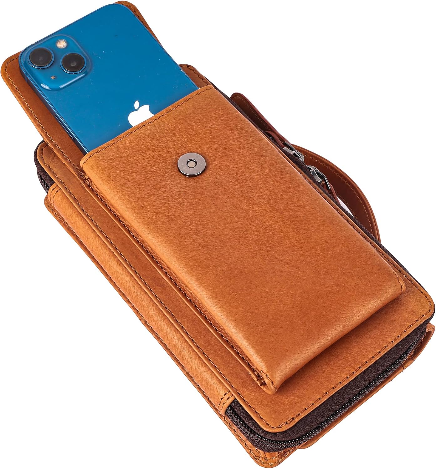 - · Umhängetasche - Sehr angenehmes weiches Leder, ein Tolles Material im leichten Vintage-Look. Ein echt hochwertiger Organizer - durch das Langlebige Echt Leder werden Sie den unterschied fühlen. Inklusive RFID-Schutz ist die Börse sicher gegen