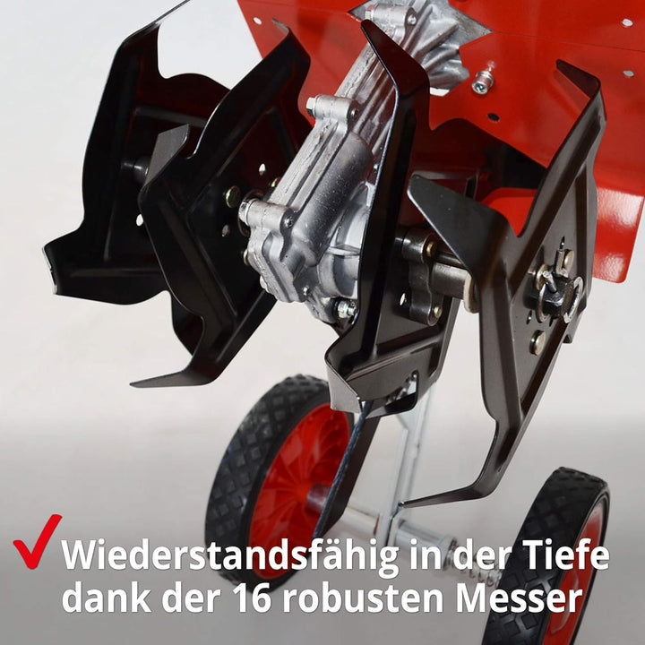 - KOMFORTABLES ARBEITEN – Die Hand Griffe der Hacke sind ergonomisch angebracht für kräfteschonendes arbeiten. Der Gartenkultivator ist leicht zu manövrieren. Zubehör und Ersatzteile bei uns erhältlich