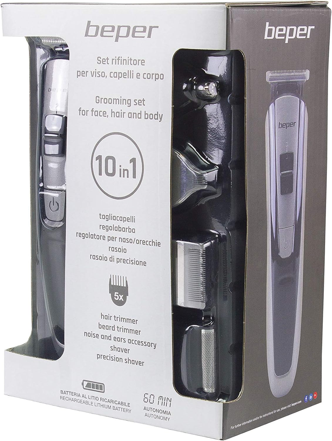 - 10 IN1: Haarschneider, Bartschneider, Nasenhaartrimmer und Ohrenschneider, Präzisionsrasierer und Kopf. Beper bietet Ihnen ein einzigartiges Produkt, das 5 Funktionen erfüllt, ideal für die Pflege Ihrer Haare, Bart und Gesicht gleichzeitig und bequem