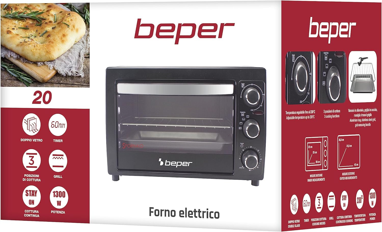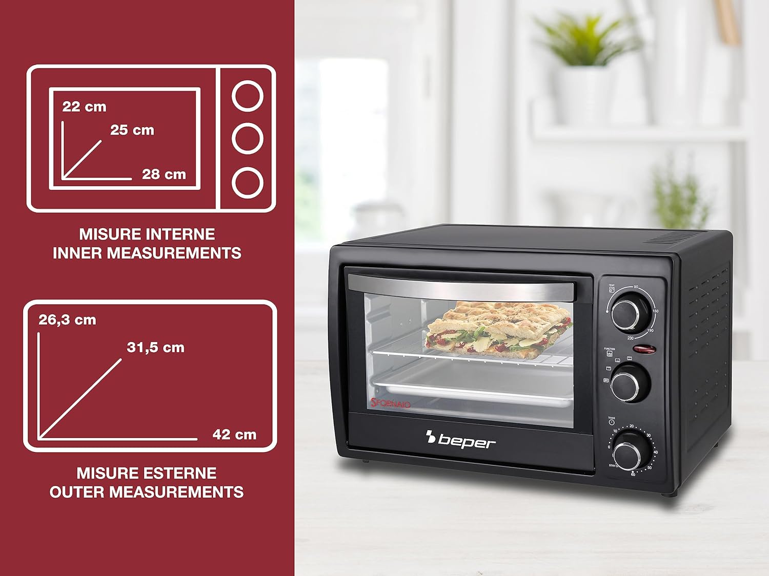 - INNOVATIVER OFEN: Dank der Stahlheizelemente ermöglicht der 20L Beper Ofen hervorragende Garergebnisse. Dank des Kochwählers und der einstellbaren Temperatur müssen wir uns keine Sorgen mehr machen, dass unsere Speisen verkochen.