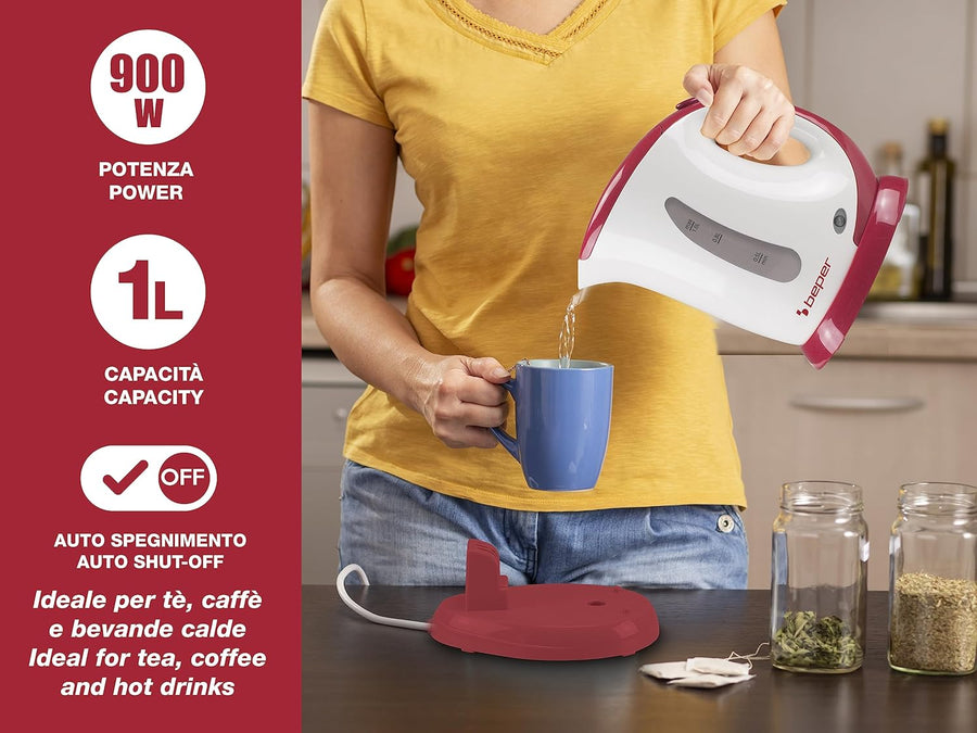 - PRAKTISCH UND KOMPAKT: Der elektrische Wasserkocher von Beper bietet dank seiner 900 W maximale Leistung in kürzester Zeit und geniessen Sie Ihre Lieblingsgetränke. Durch sein kompaktes Design ist es auch perfekt für Reisen oder Camping.