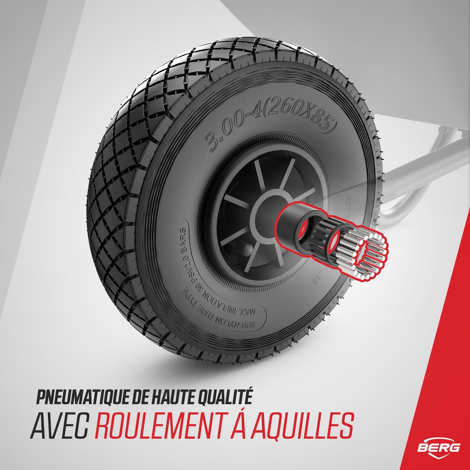 - Maximale Kontrolle: Optimale Bodenanpassung auch auf unebenen Wegen dank griffigem Schubkarre Luftreifen, Hohe Belastbarkeit durch Befestigung der Räder mit Nadellager, Stabiles Parken dank beidseitiger Standfüsse